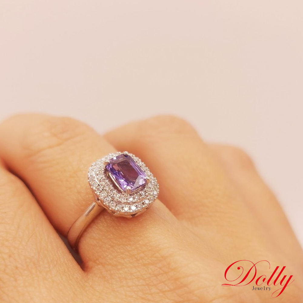 1克拉 18K金無燒斯里蘭卡艷彩紫羅蘭色藍寶石鑽石戒指