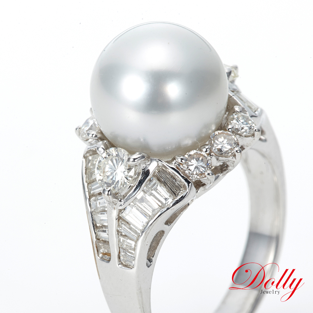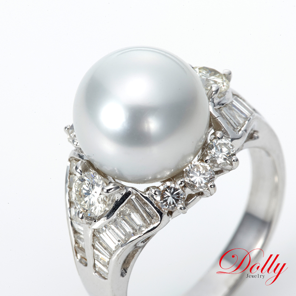 14K金 天然南洋珍珠11mm鑽石戒指