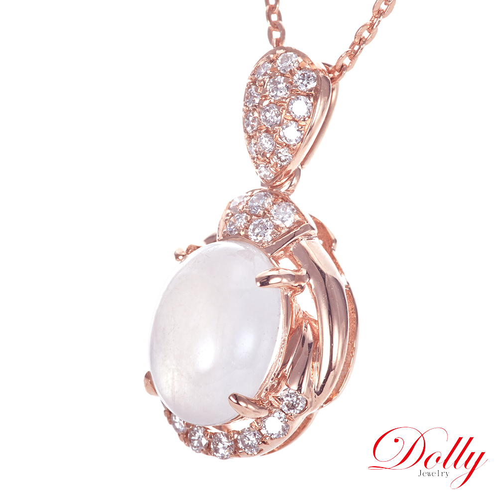 14K金 緬甸冰種A貨白翡玫瑰金鑽石項鍊-008