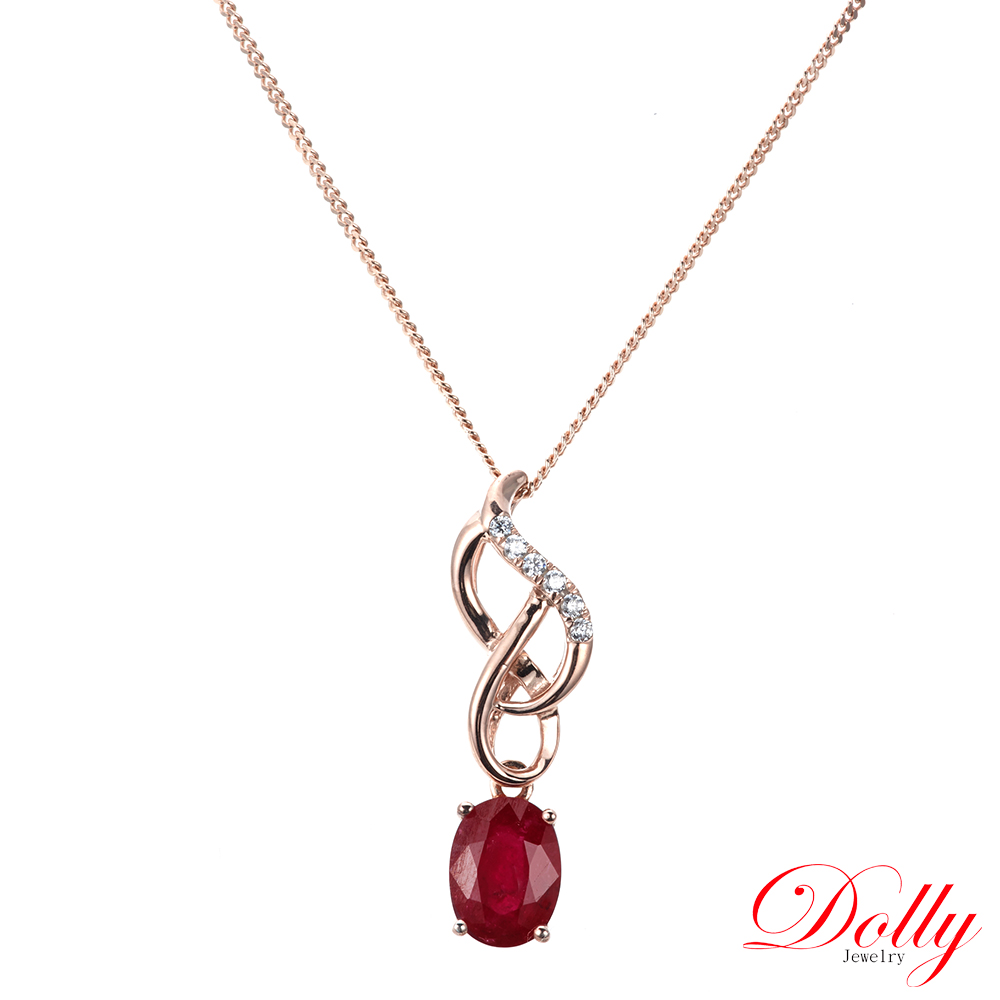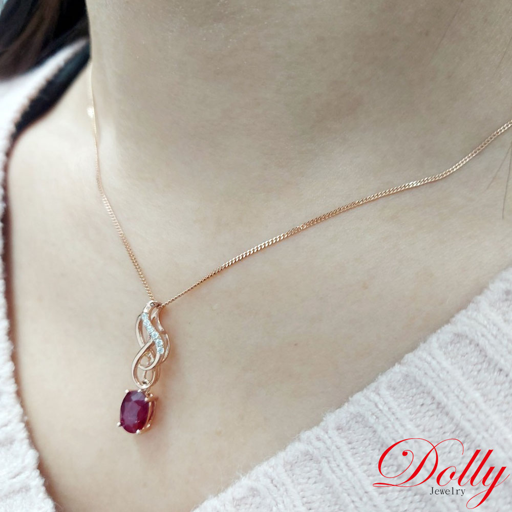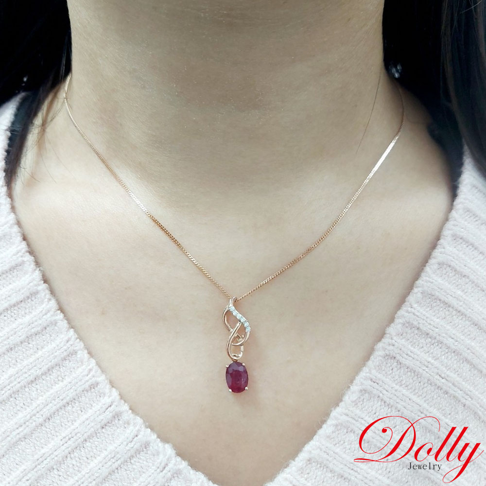 14K金 緬甸紅寶石1克拉玫瑰金鑽石項鍊