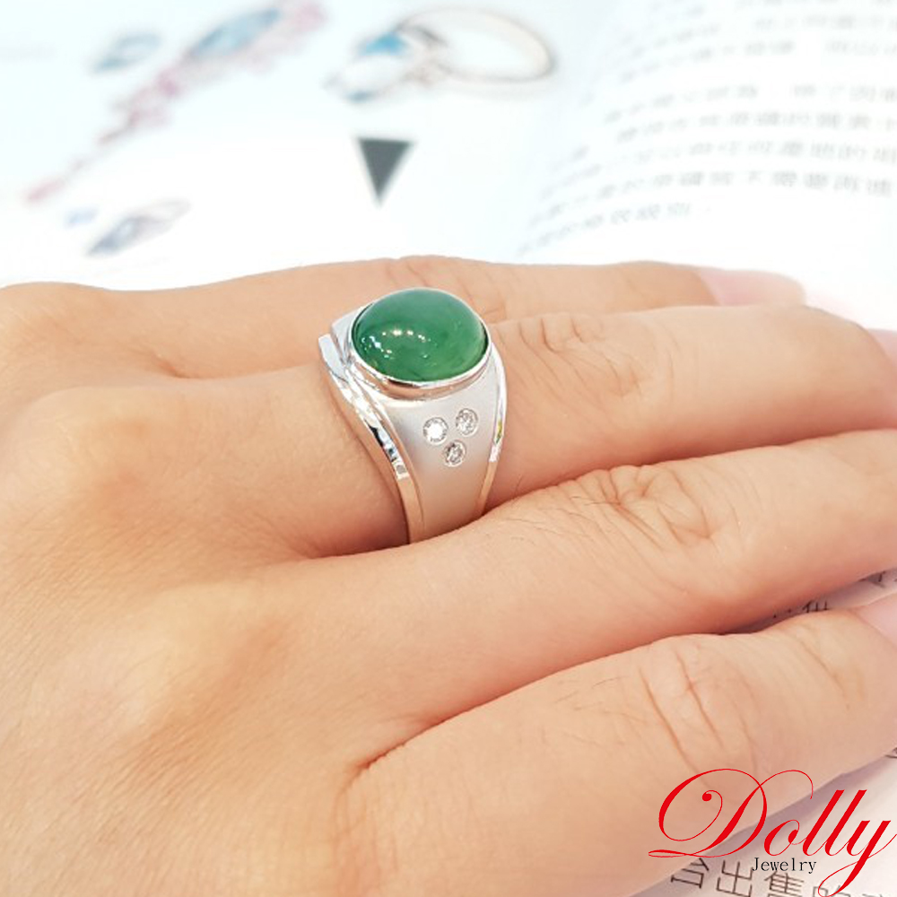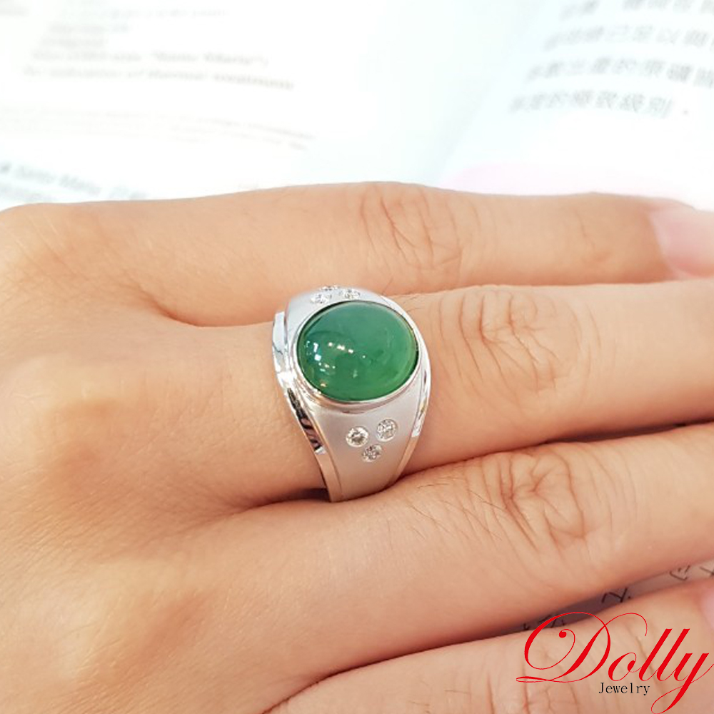 14K金 緬甸高冰種翡翠鑽石男戒