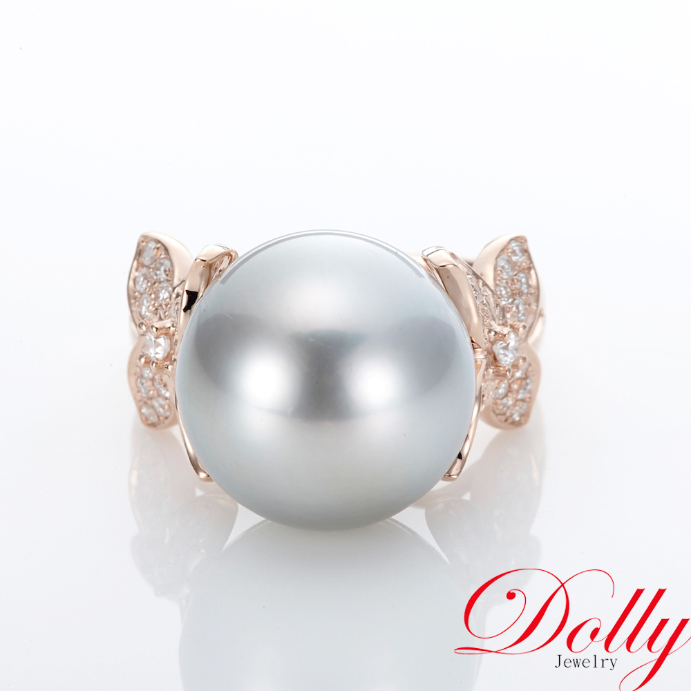 18K金 天然南洋珍珠14mm玫瑰金鑽石戒指