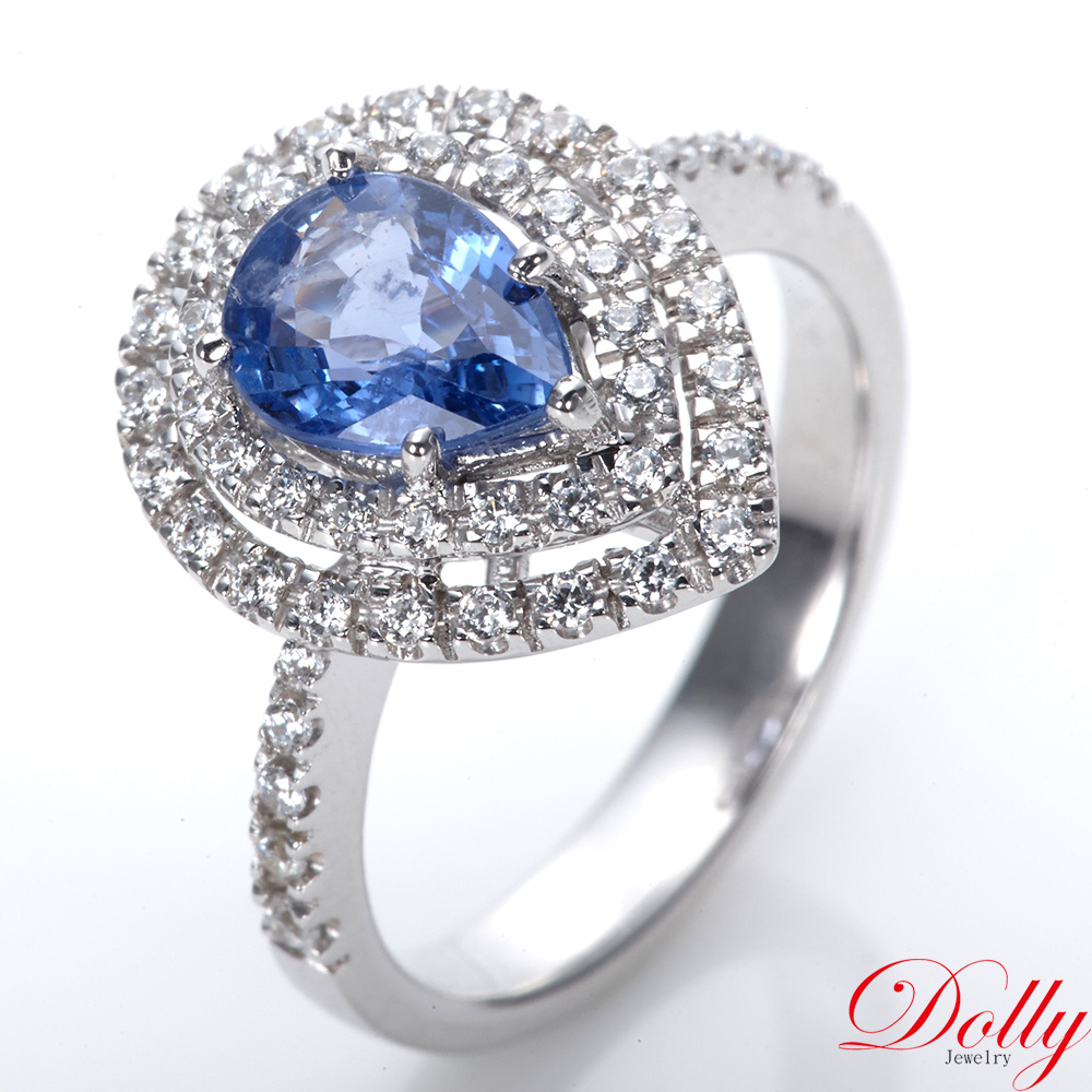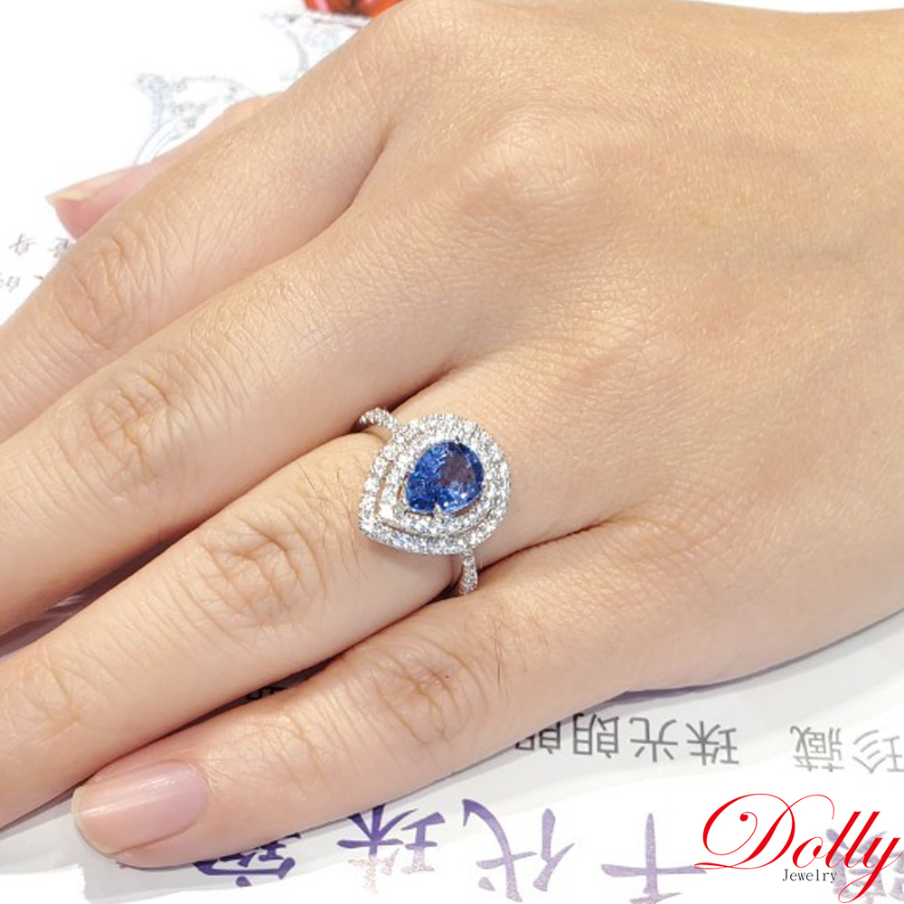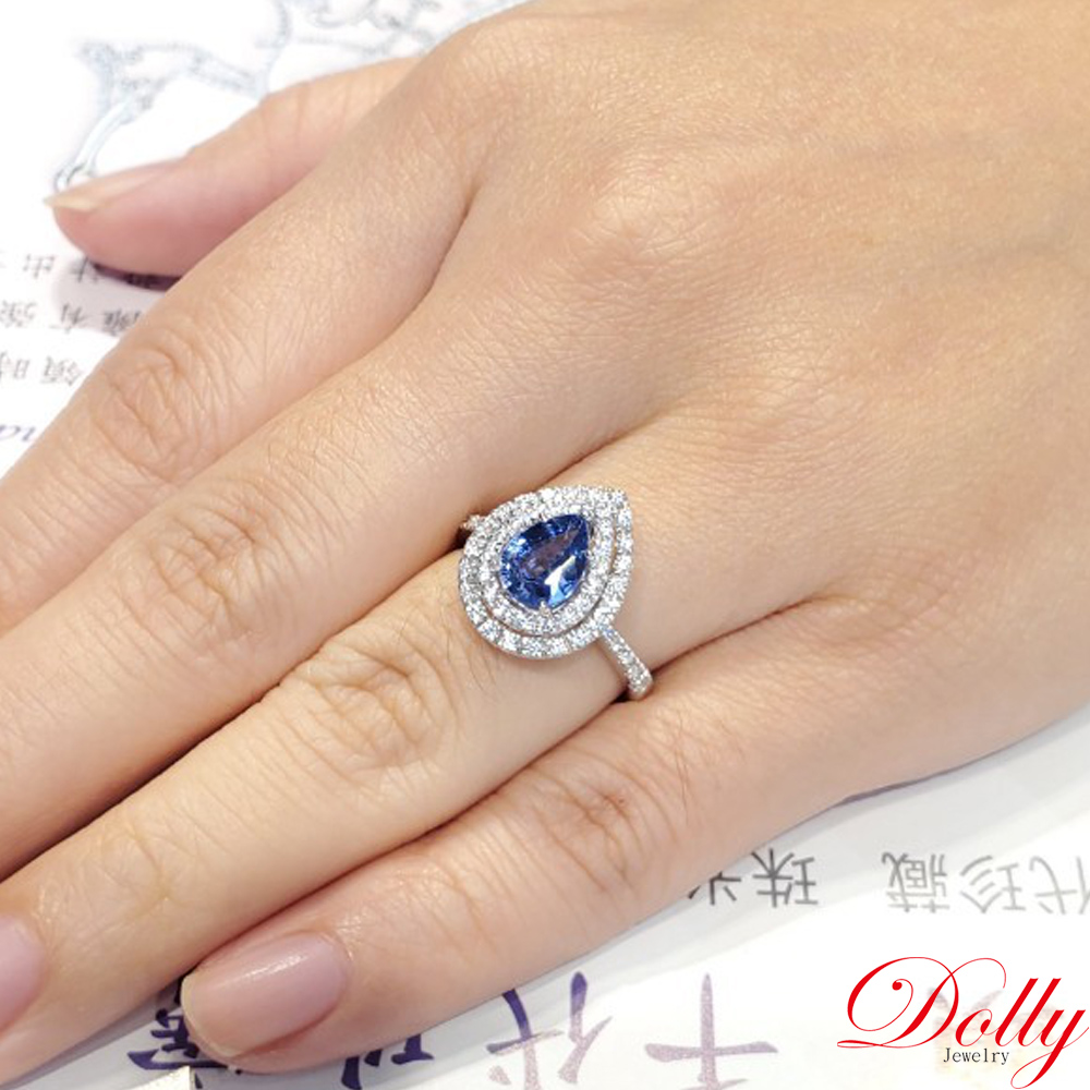 18K金 天然水滴藍寶石1克拉鑽石戒指-001