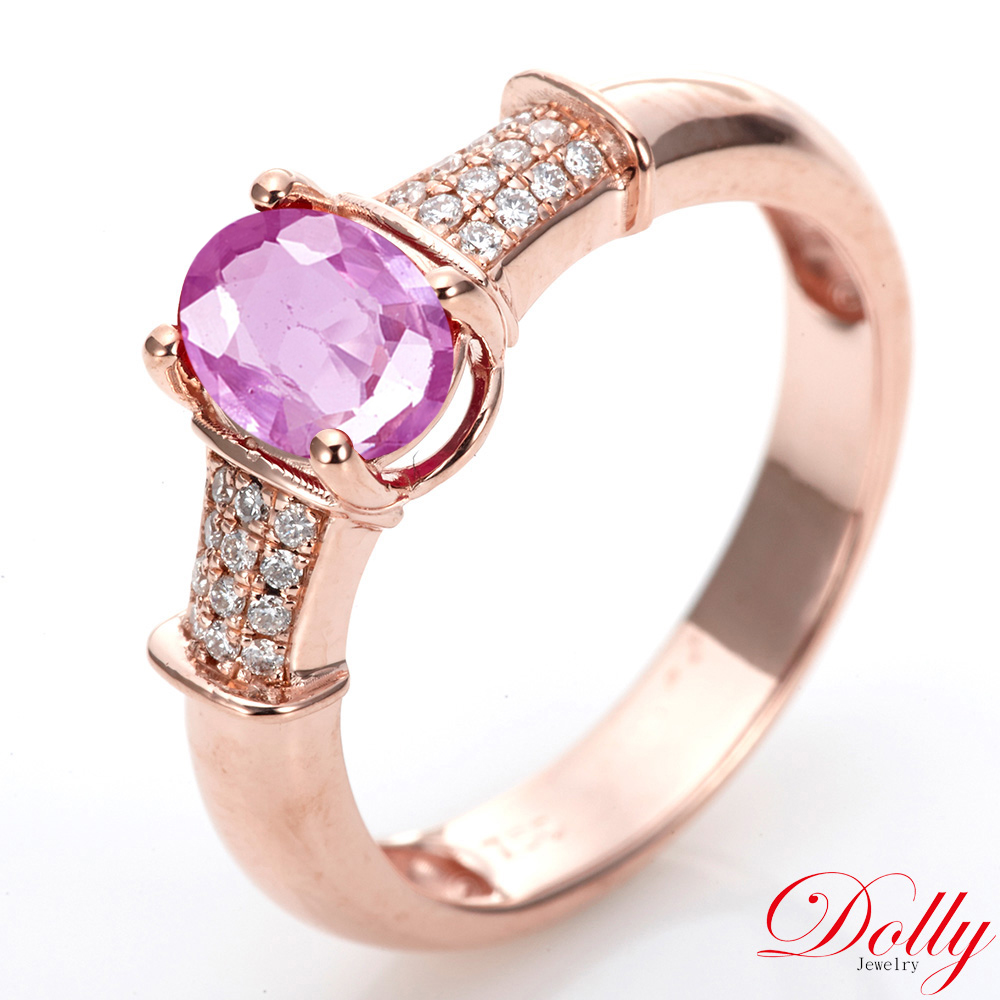 18K金 天然粉紅藍寶石玫瑰金鑽石戒指-005