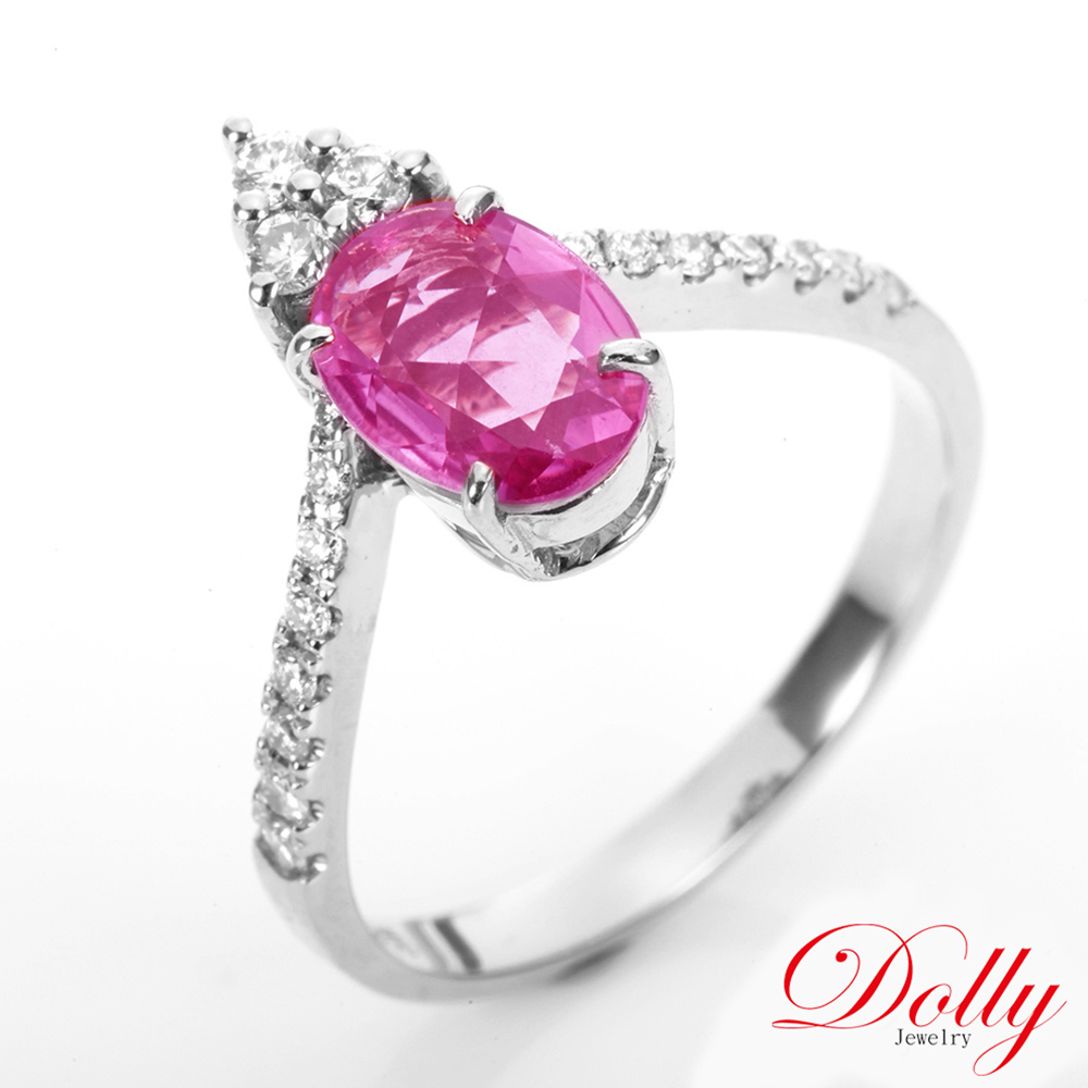 18K金 天然粉紅藍寶石1克拉鑽石戒指-010