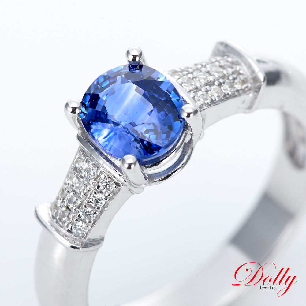 18K金 無燒皇家藍色藍寶石1克拉鑽石戒指-013