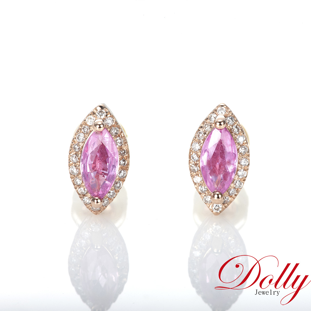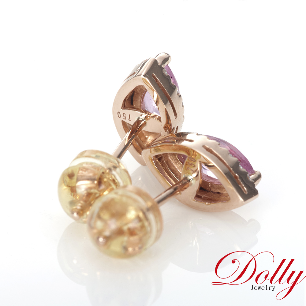 18K金 無燒粉紅藍寶石鑽石耳環
