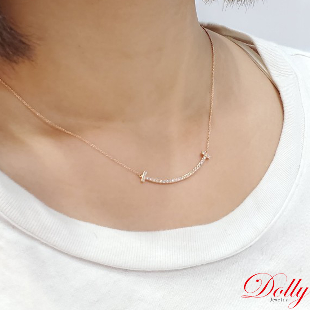 18K金 輕珠寶0.35克拉玫瑰金鑽石微笑鍊