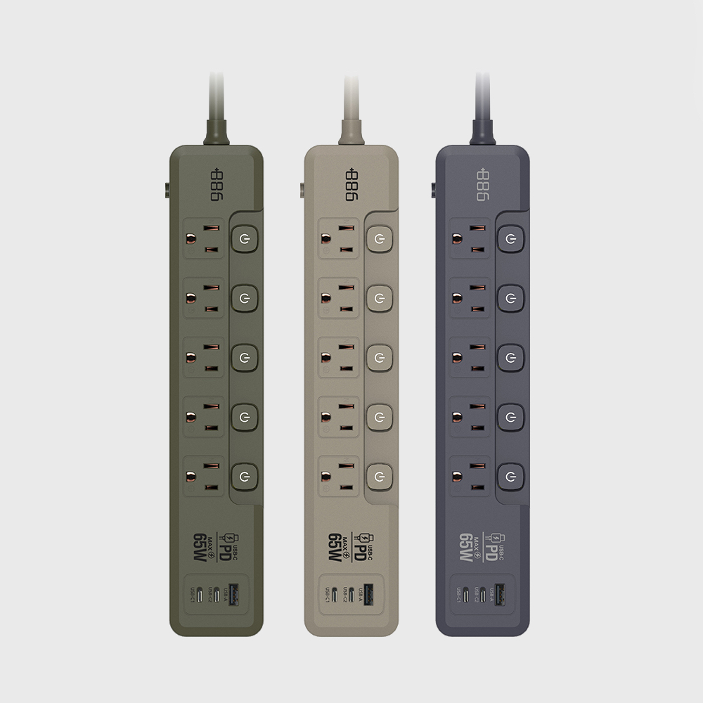 +886|極野家 V2 HPS2556 5開5插PD65W快充延長線
