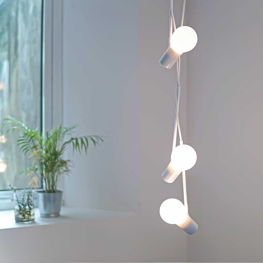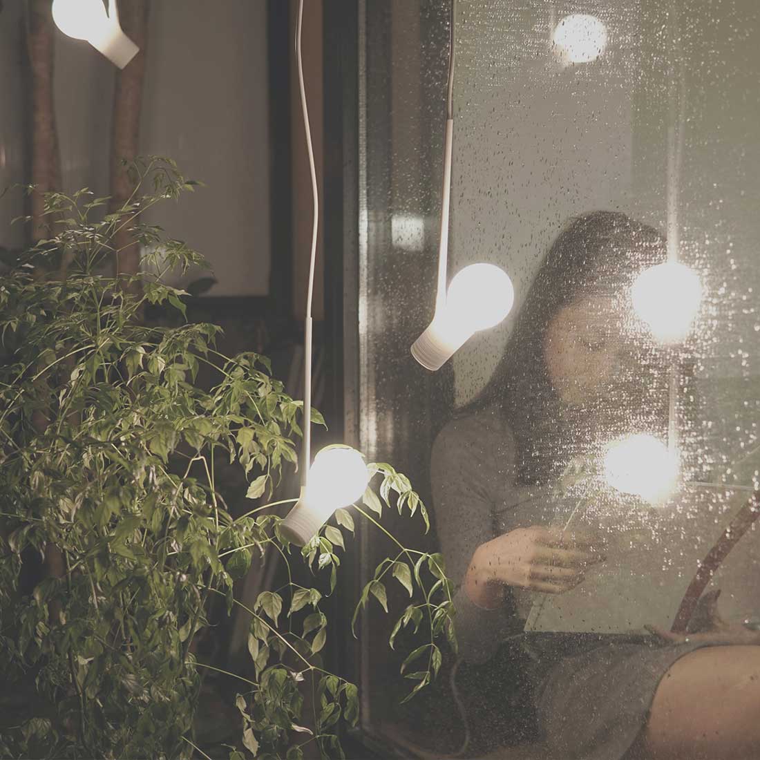 Bird Lamps系列基本和純粹的形態。精簡實用,僅通過改變燈泡懸掛角度,帶來設計感與想象空間。配有電源插頭和吊燈天花安裝件,可選擇固定式吊裝或是直接插入電源插座使用,隨意擺放或懸掛。可單獨使用,點亮一個居室角落;也可多盞組合搭配,自由組合設計空間。由曾經在中國街頭巷尾最常見的吊燈啟發,Bird Lamps 概念出發點在於去掉所有不必要的部分,留下了一盞燈最基本的配件——燈泡、燈座和電線。僅通過改變燈泡角度,產生趣味性和想象空間,同時光效也得以最大化。