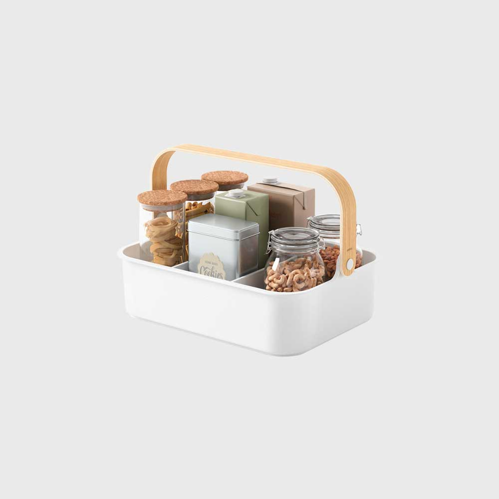 貝爾伍德收納籃由回收塑膠和可持續木材製成,持久耐用。另外,它們採用整合式手把製成,因此無論裝得有多滿,都可以輕鬆攜帶!分為兩種尺寸可供選擇,也可以移除分隔板,以便您以最適合整理需求的方式使用它們。