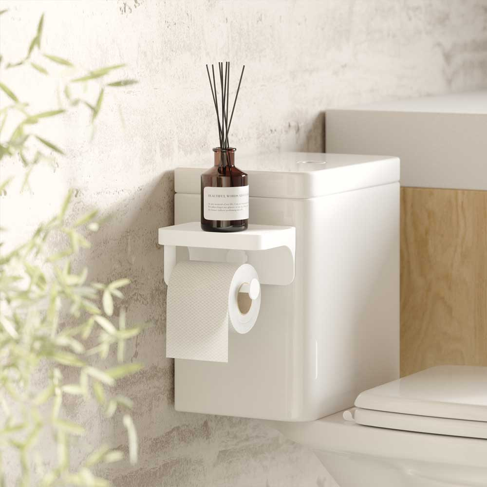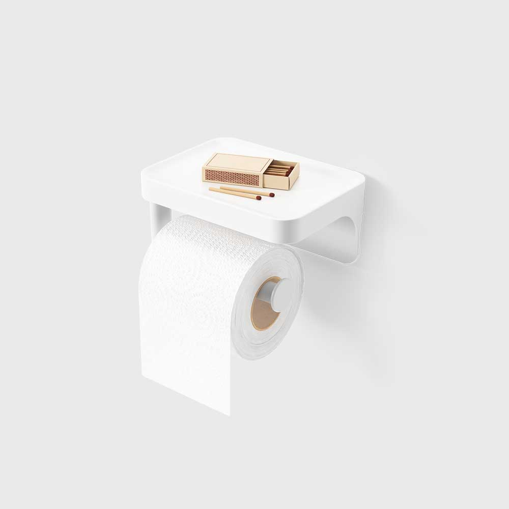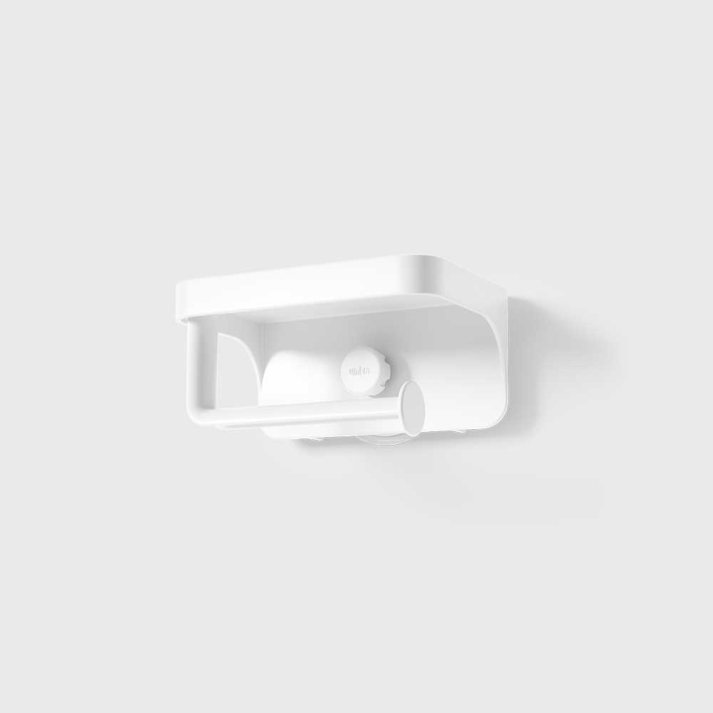 這款 FLEX 菲樂卷紙架將衛生紙架和層架合而為一,提供方便的位置來放置手機、鑰匙等小配件。 Flex 衛生紙架易於安裝,內含無損防水黏合條,可黏貼在磁磚、乾牆、混凝土等各種表面上(不適用於多孔表面)。另一種用途是,衛生紙架也可以拆下,作為獨立的浴室架。尺寸為16 x 11 x 8 公分。