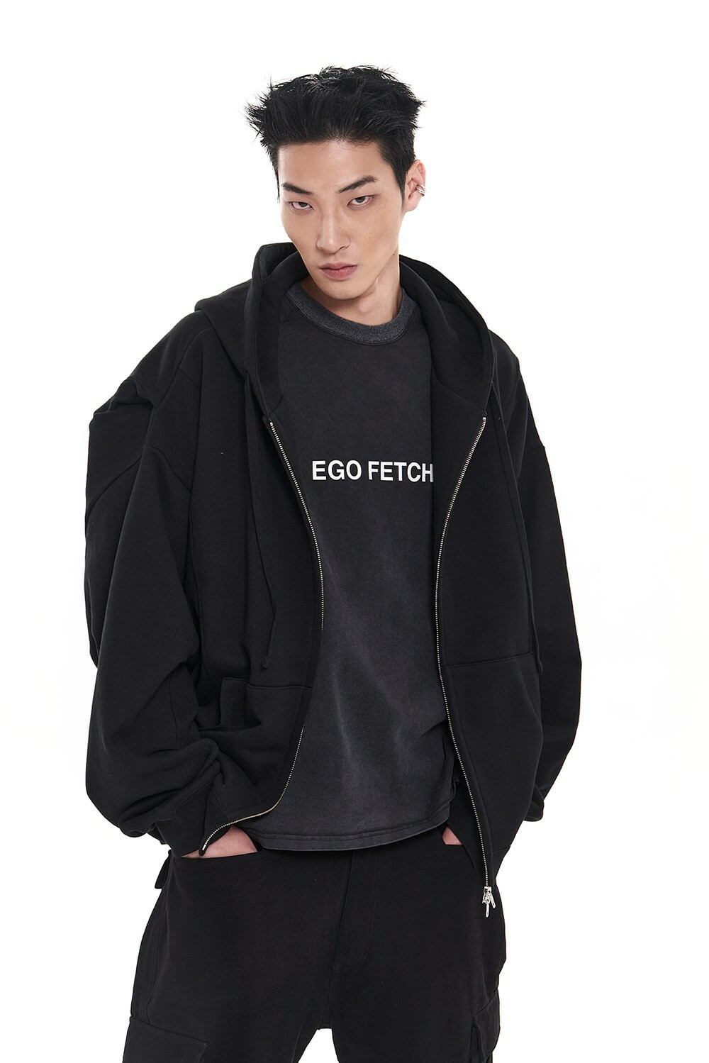 EGO FETCH Zip Hoodie Oversized 連帽外套 灰色/黑色