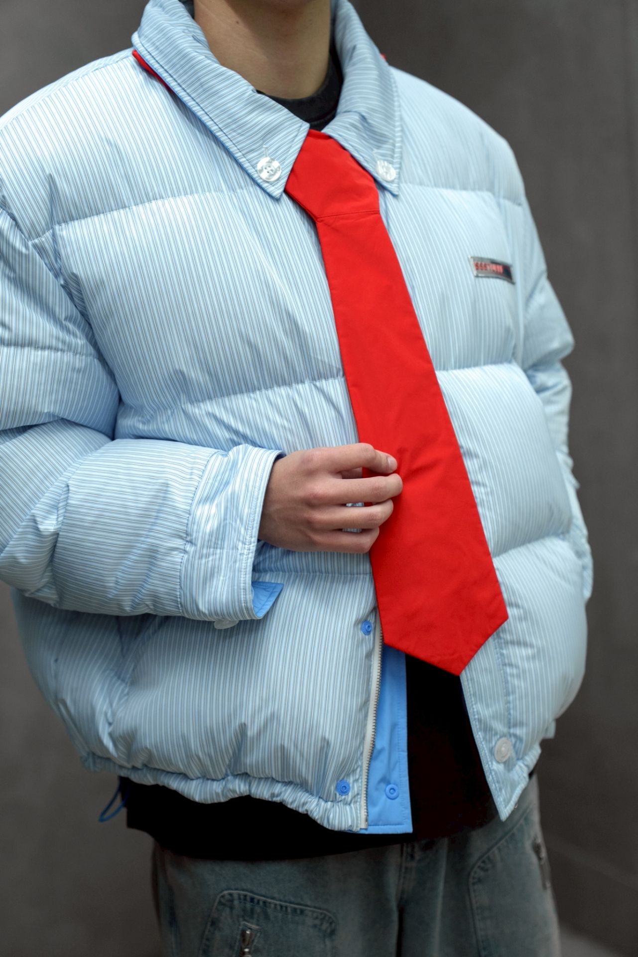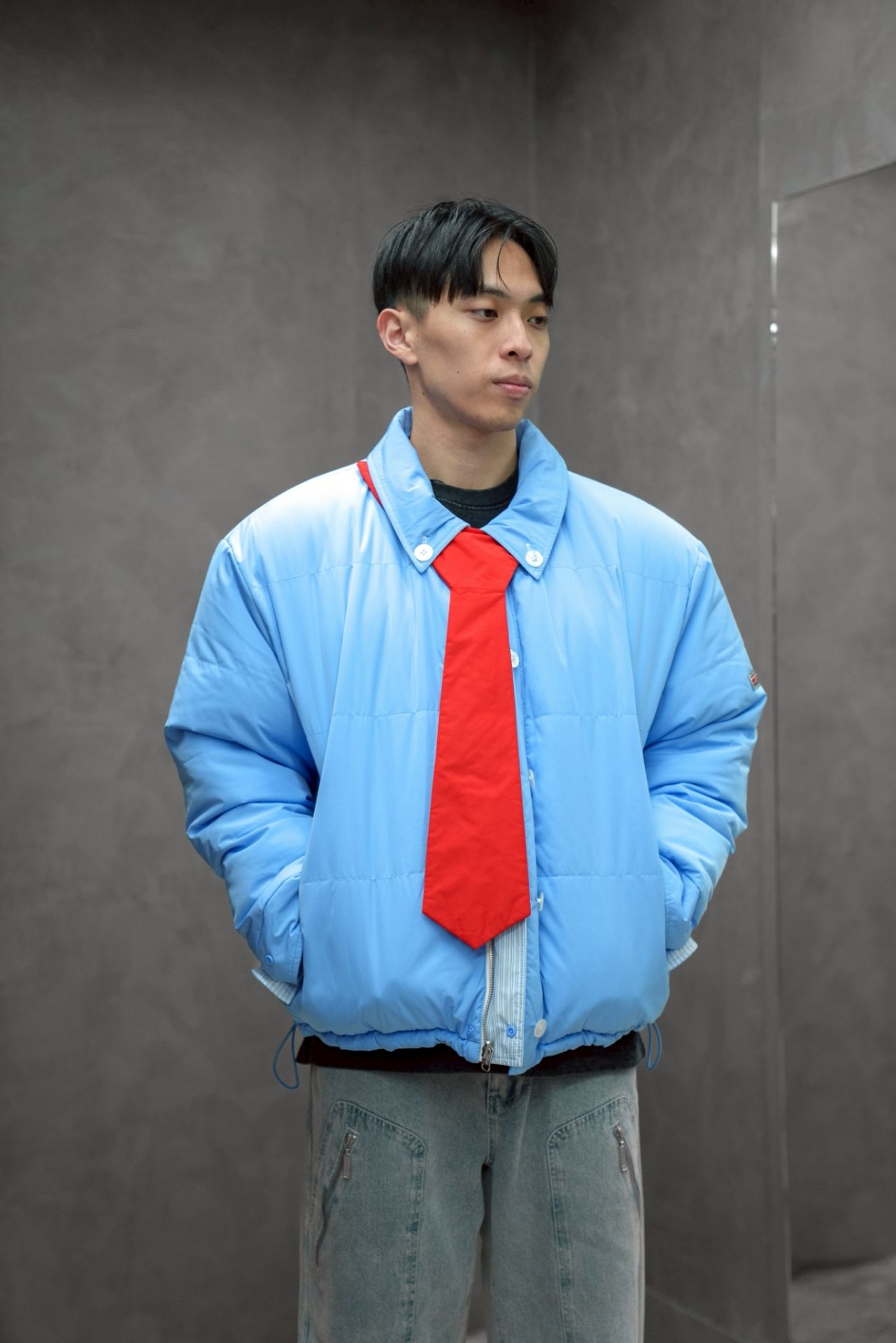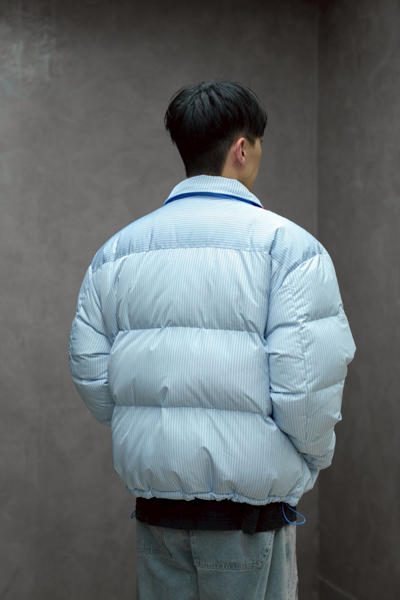 SSSTUFFF Reversible Shirt Down Puffer "White Blue" 白藍色 雙面穿 領帶羽絨服