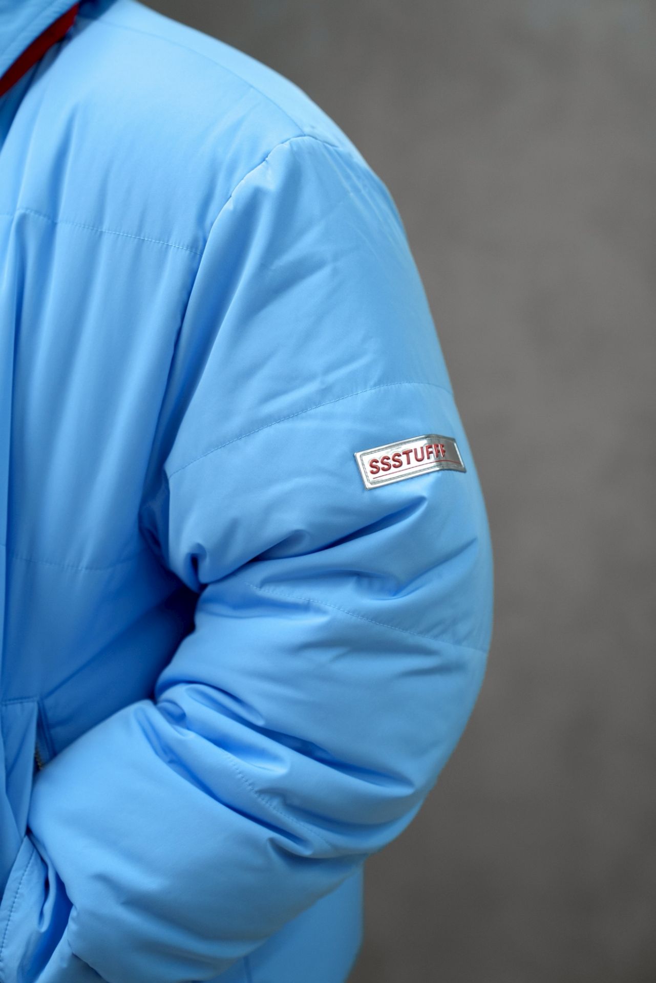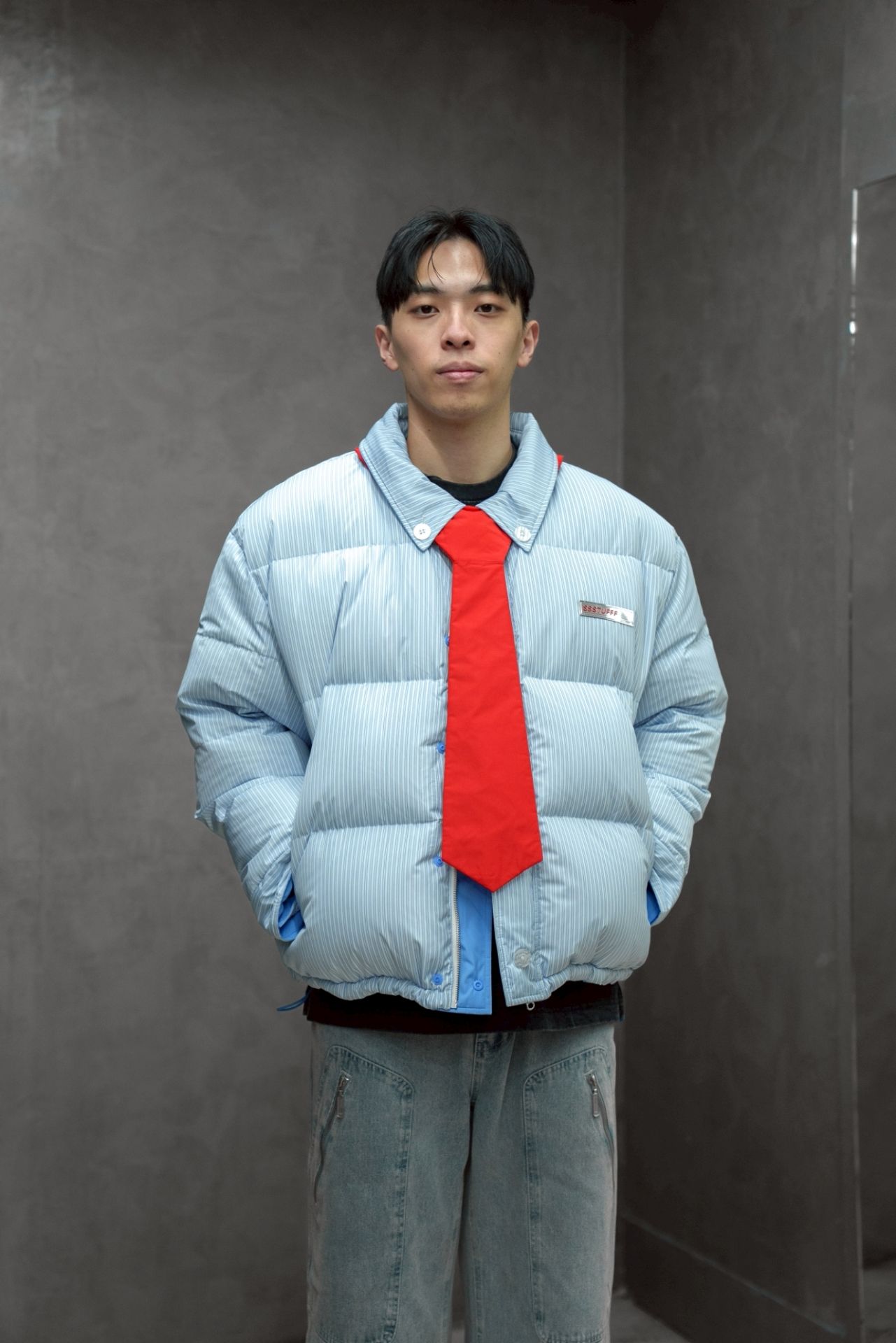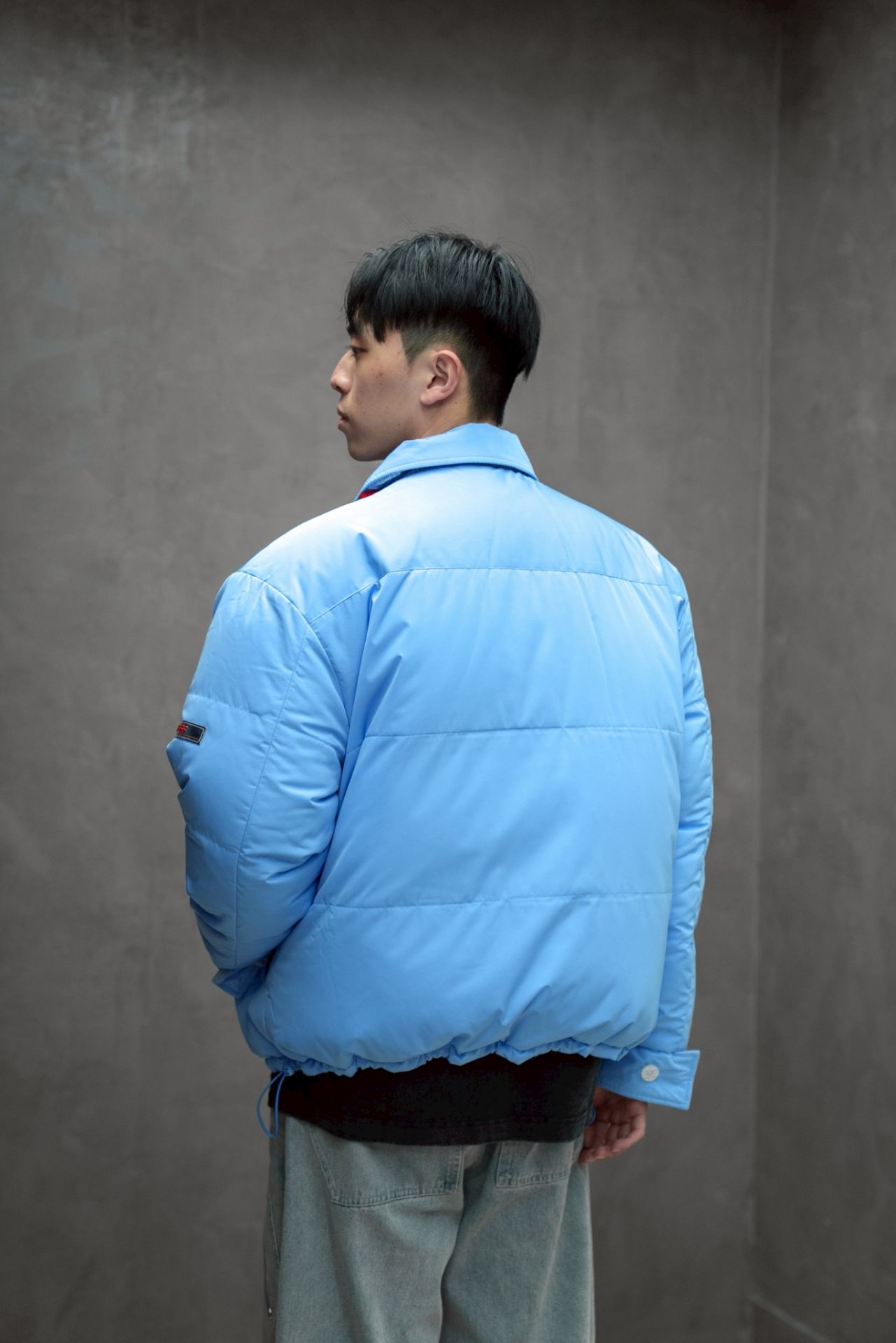 SSSTUFFF Reversible Shirt Down Puffer "White Blue" 白藍色 雙面穿 領帶羽絨服