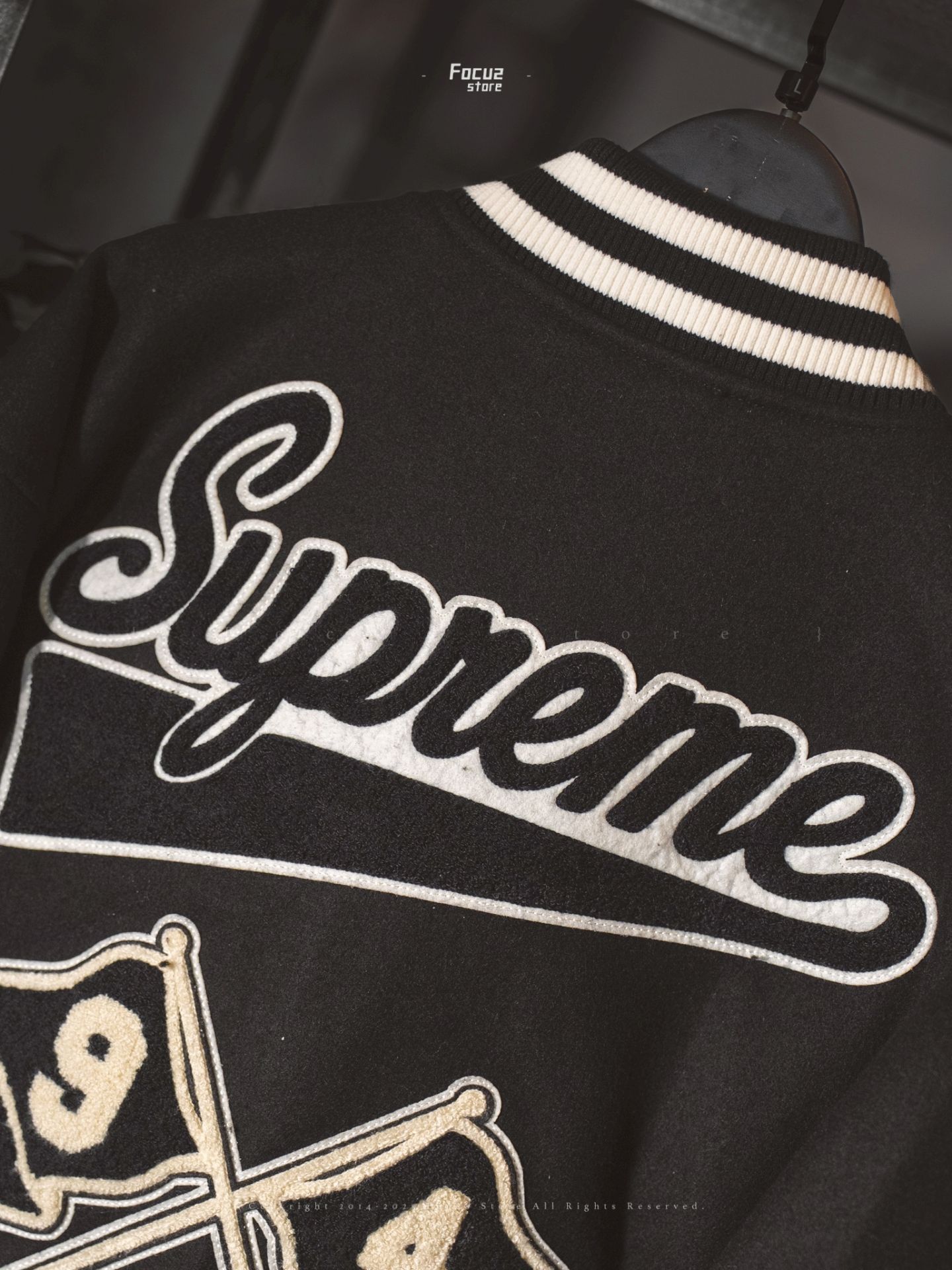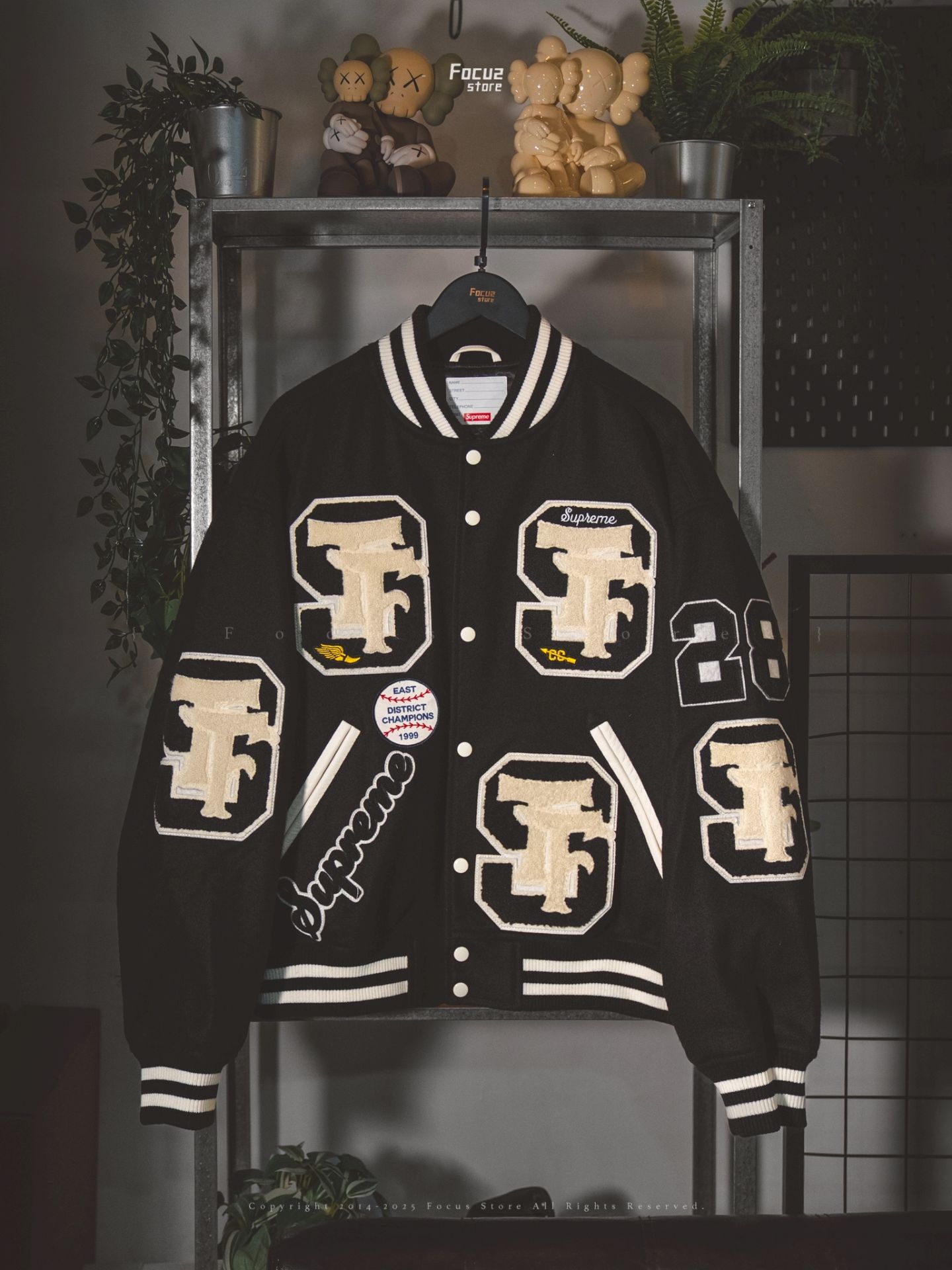 【Focus Store】現貨秒發 Supreme FW25 Week1 Drill Team Varsity Jacket "Black" 黑色 雪尼爾貼花 教練外套