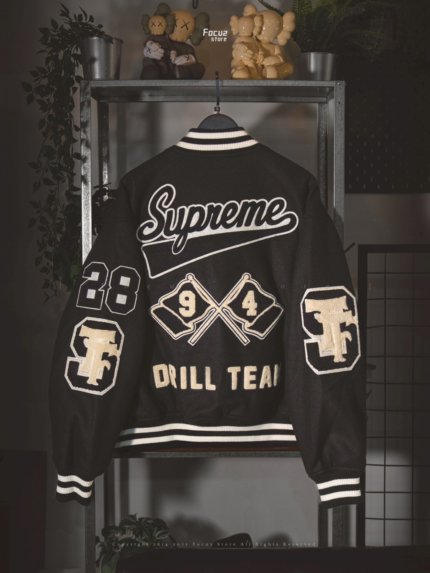 Supreme FW25 Week1 Drill Team Varsity Jacket "Black" 黑色 雪尼爾貼花 教練外套