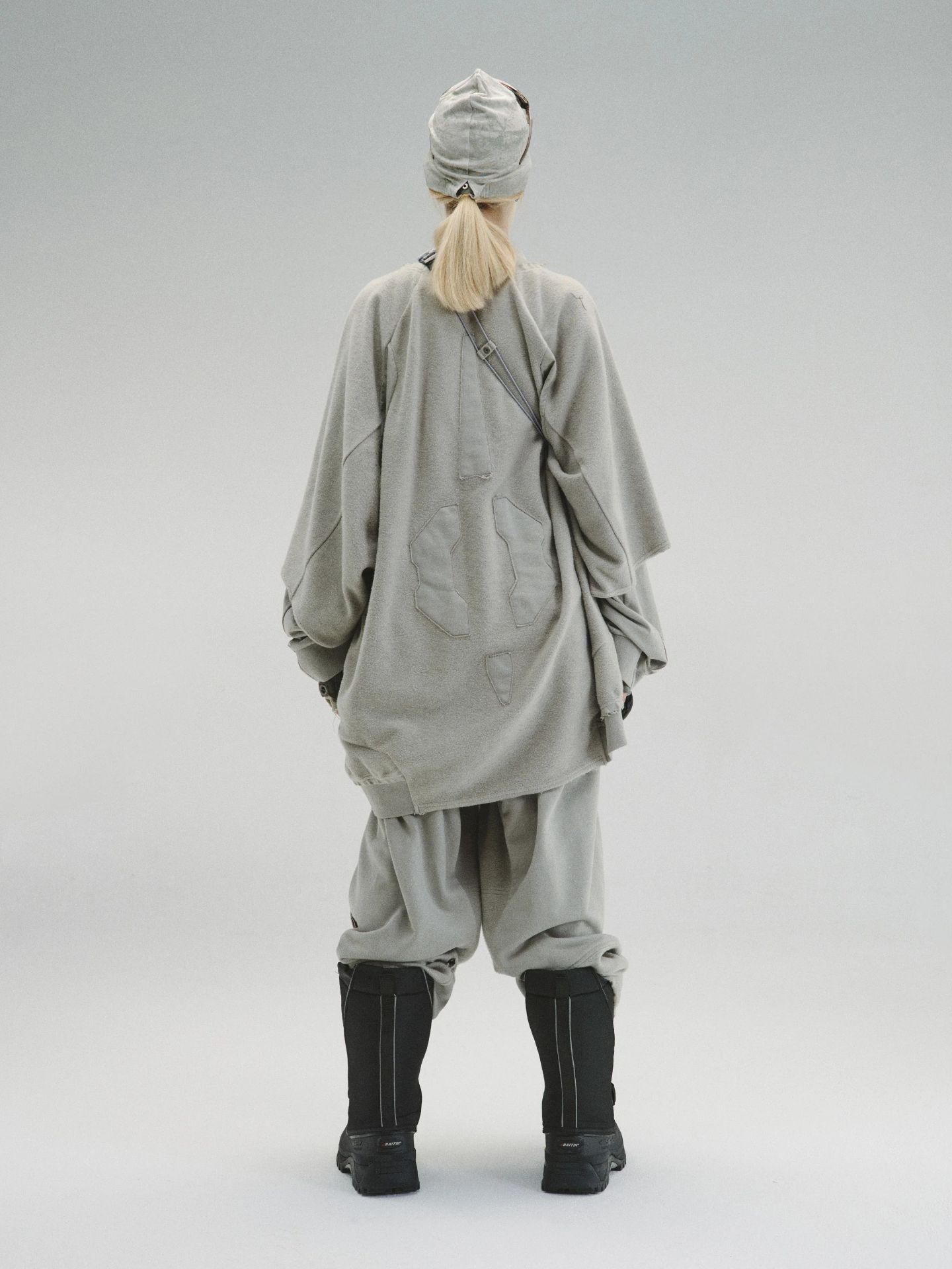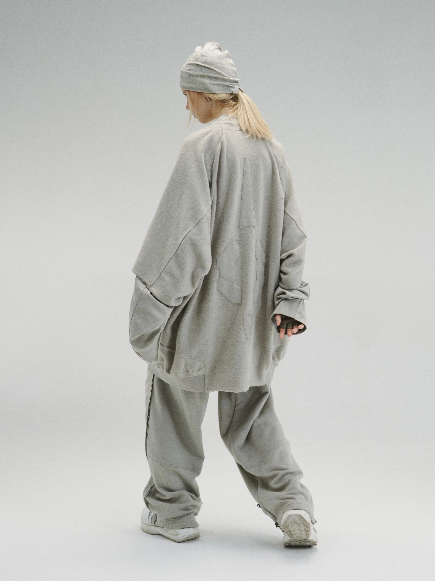 _對比混合面料面板身體結構。