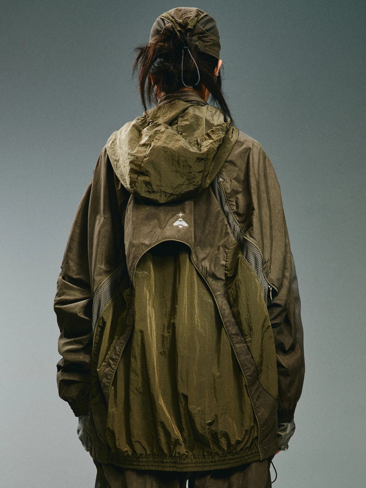 _帽子隱藏在立領後方的拉鍊口袋裡,並帶有抽繩調節器。