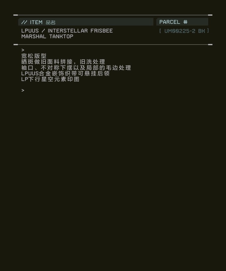 Hamcus SS25 DUSZEN LPUUS / Interstellar Frisbee Marshal Tanktop 刷舊拼接背心 UM00225-2(DG)