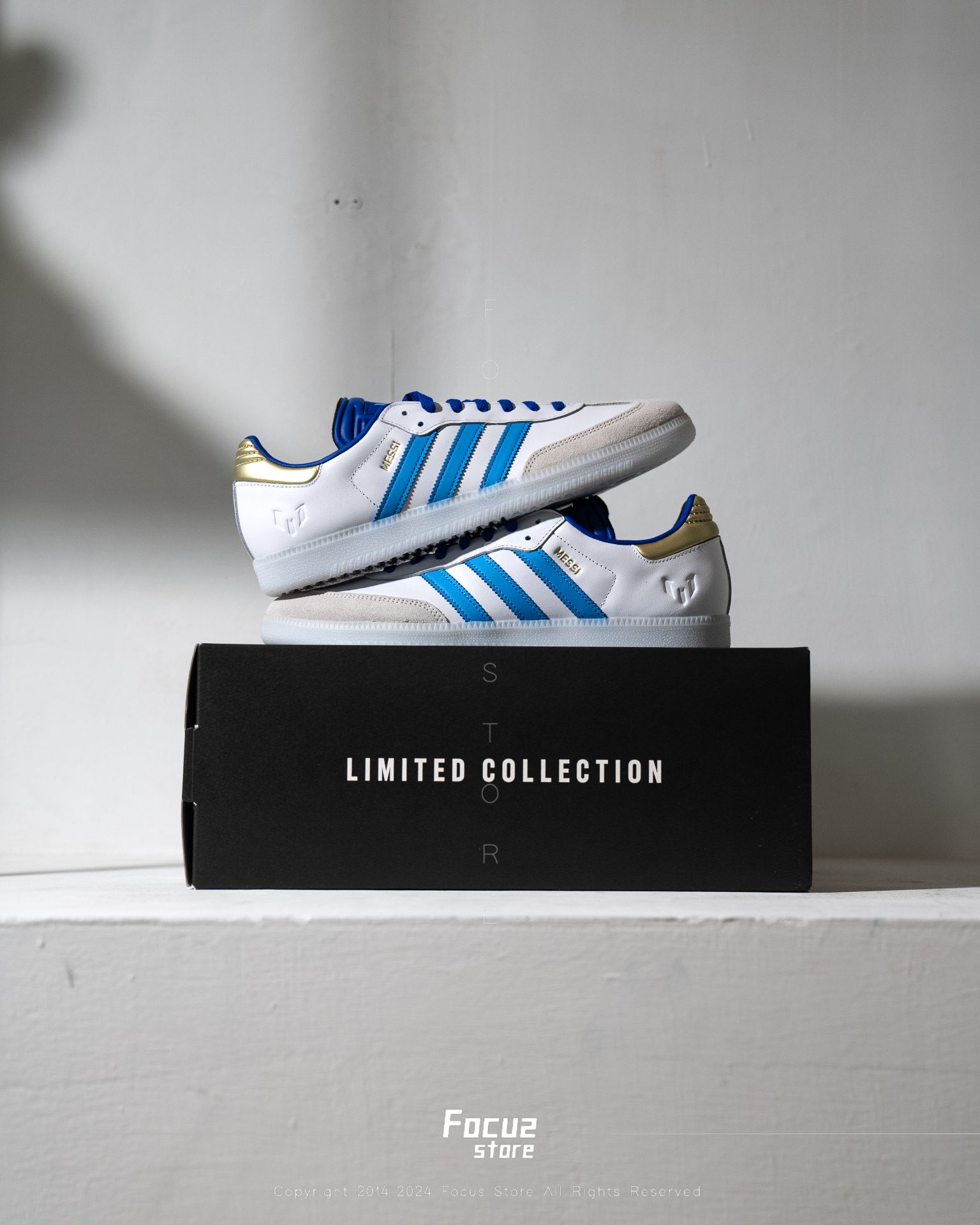 【Focus Store】部分現貨 Lionel Messi x Samba Indoor "Spark Gen10s" 白藍金 ID3550