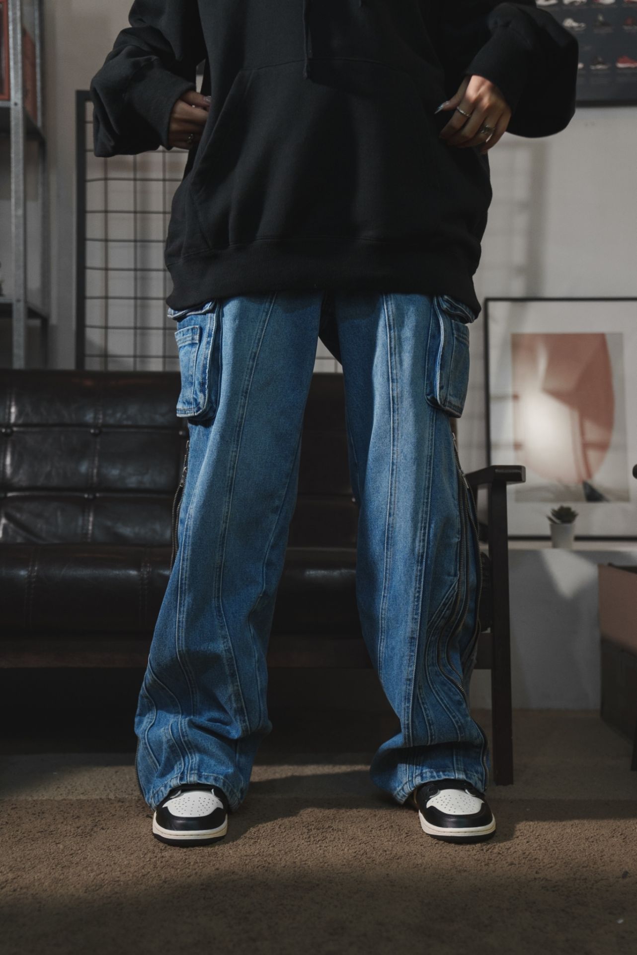 EGO FETCH Multi-Pocket Side-zip Jeans 雙拉鍊闊腿褲 EGO24SSBPT050