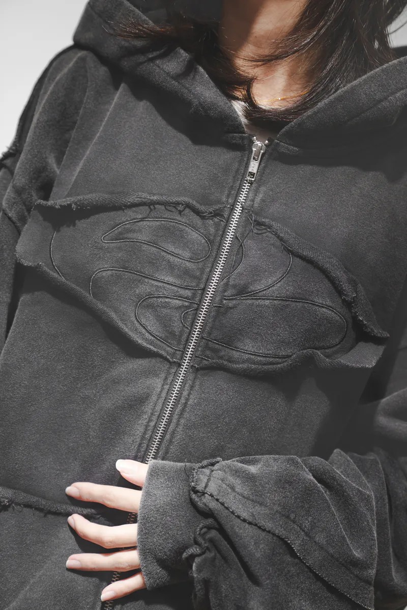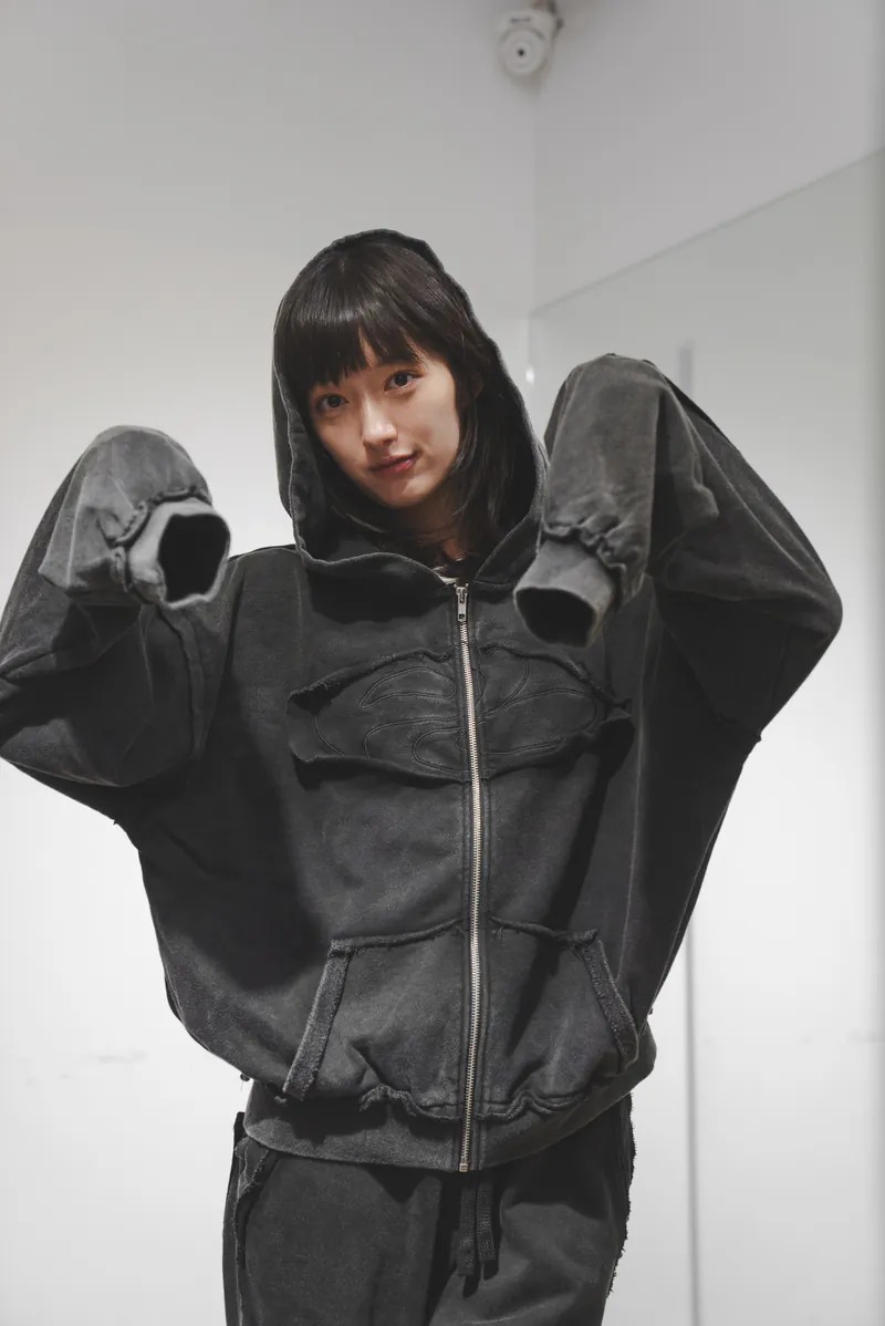 EGO FETCH Zip Patch Hoodie 黑色 拉鍊連帽外套 EGO24SSTHD041