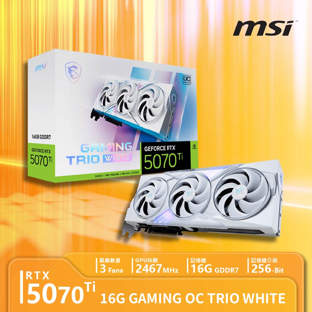微星MSI獨立顯示卡|MSI GeForce RTX 5070 Ti 16G GAMING OC TRIO超頻版 WHITE