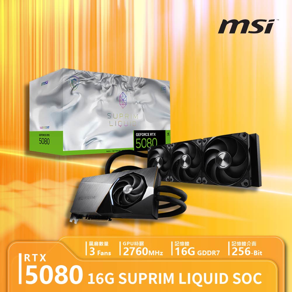 微星MSI獨立顯示卡|MSI GeForce RTX 5080 16G SUPRIM LIQUID SOC超頻版