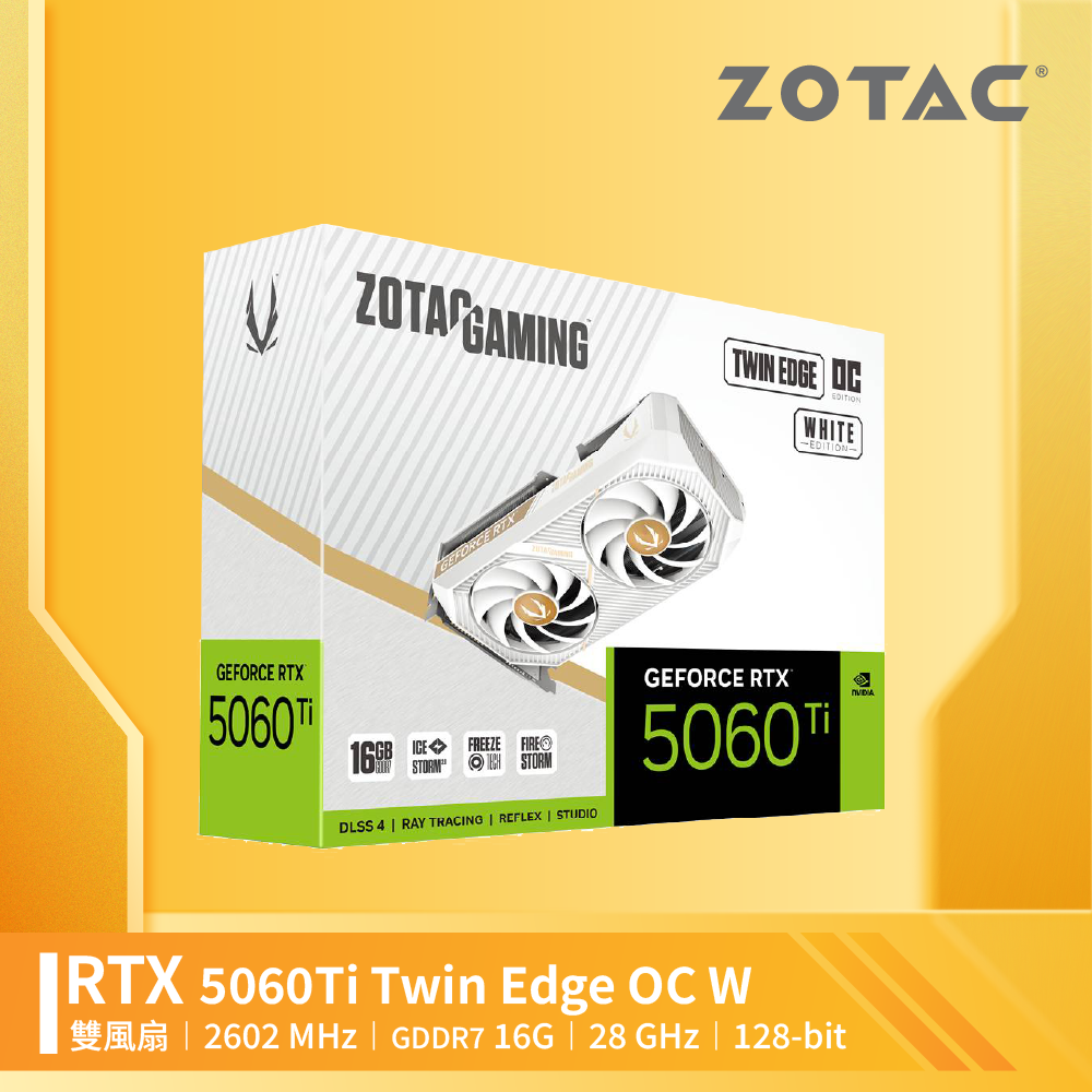 ZOTAC GAMING GeForce RTX 5060 Ti 16GB Twin Edge OC超頻版 White Edition|獨立顯示卡