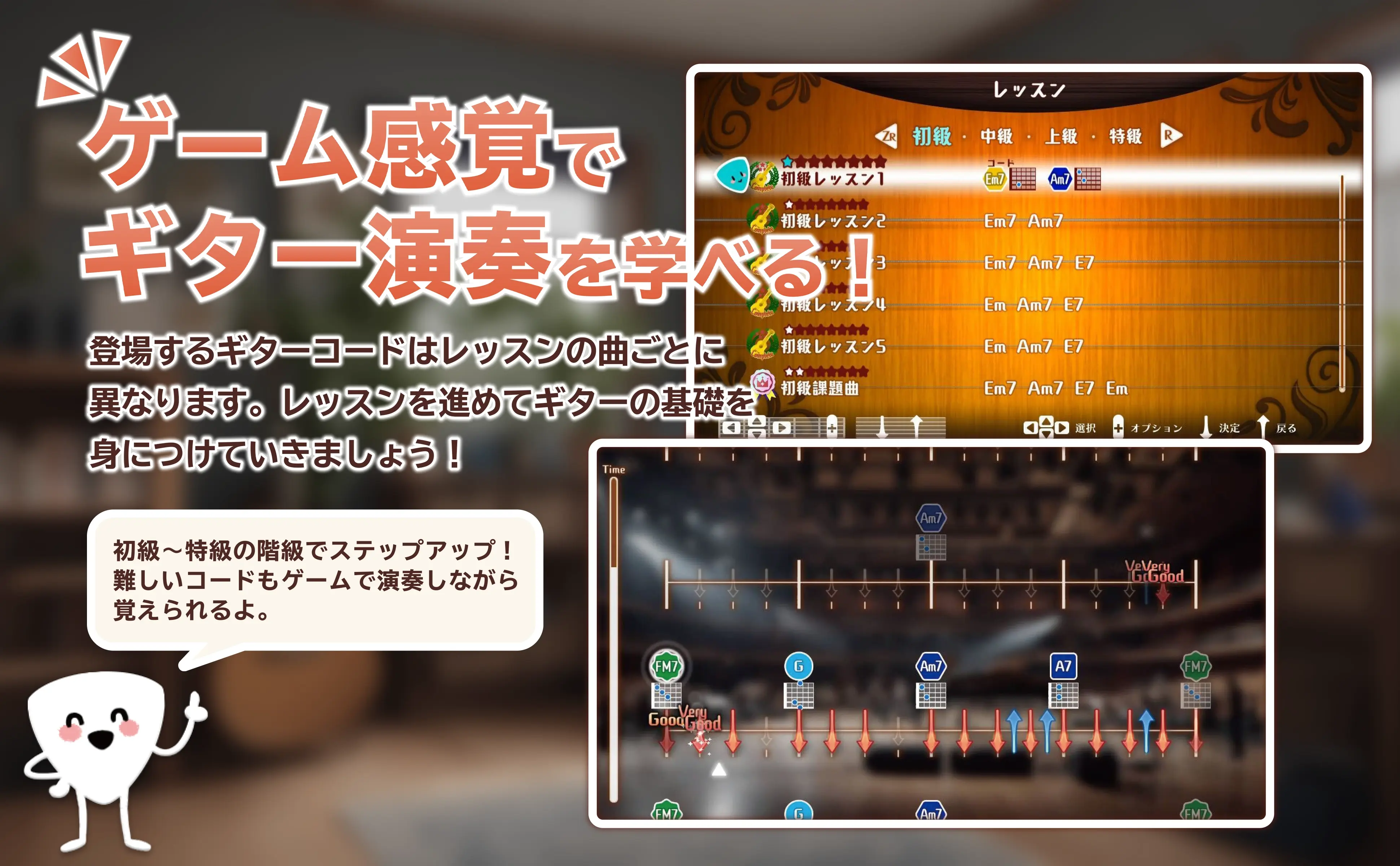 《吉他生活 -第 1 課-》是 HORI 以其拿手的周邊硬體結合遊戲軟體而成的產品,只要將右 Joy-Con 控制器安裝在專用吉他控制器上,再搭配專屬的軟體,就可以在 Switch 上輕鬆練習吉他彈奏。收錄豐富的教學指引,玩家可以像遊玩電玩遊戲般,透過挑戰不同等級的課程逐步熟悉彈奏技巧,朝向吉他高手的目標邁進。
