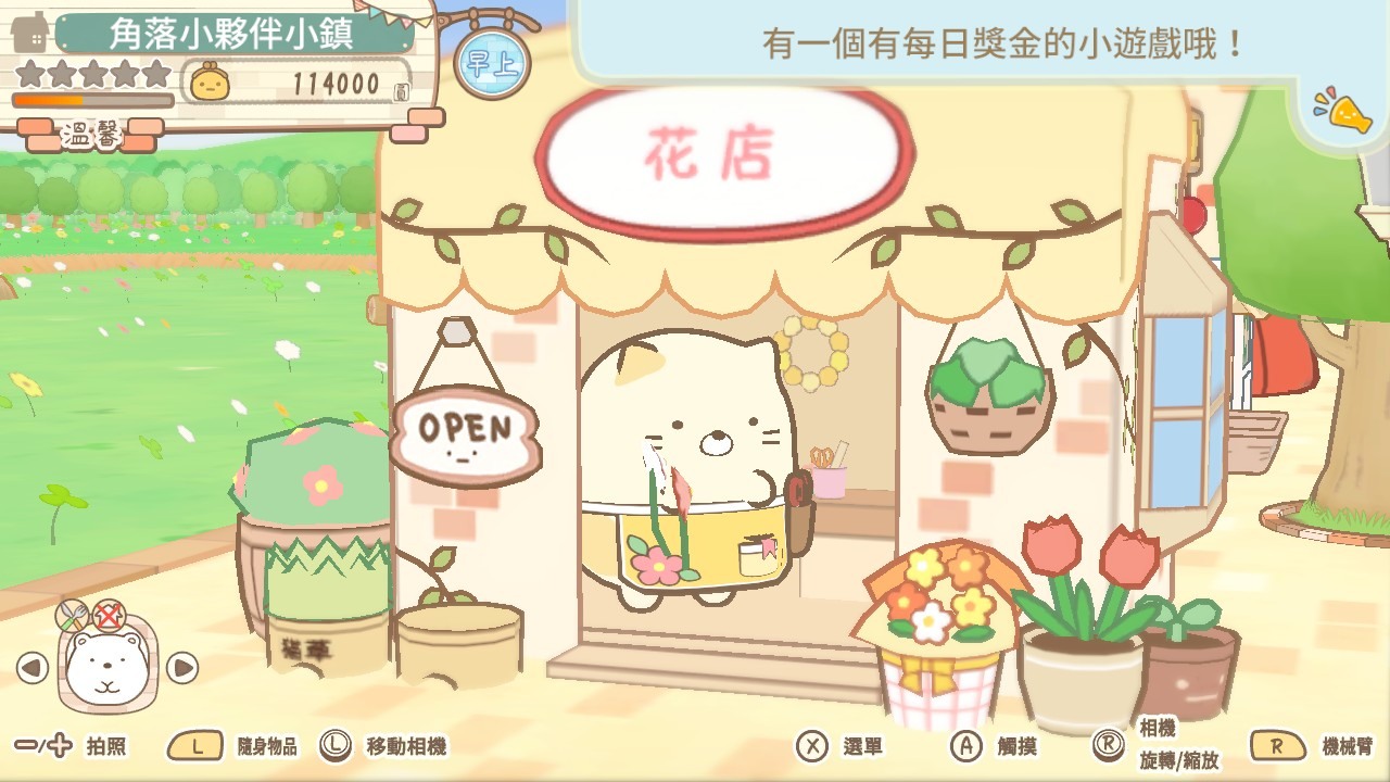 在廣闊區域中佈置可愛的房屋和商店等建築物,創造屬於自己的『角落小夥伴小鎮』吧!只要建造出一座溫馨舒適的小鎮,就能吸引角落小夥伴們搬進小鎮來喔。