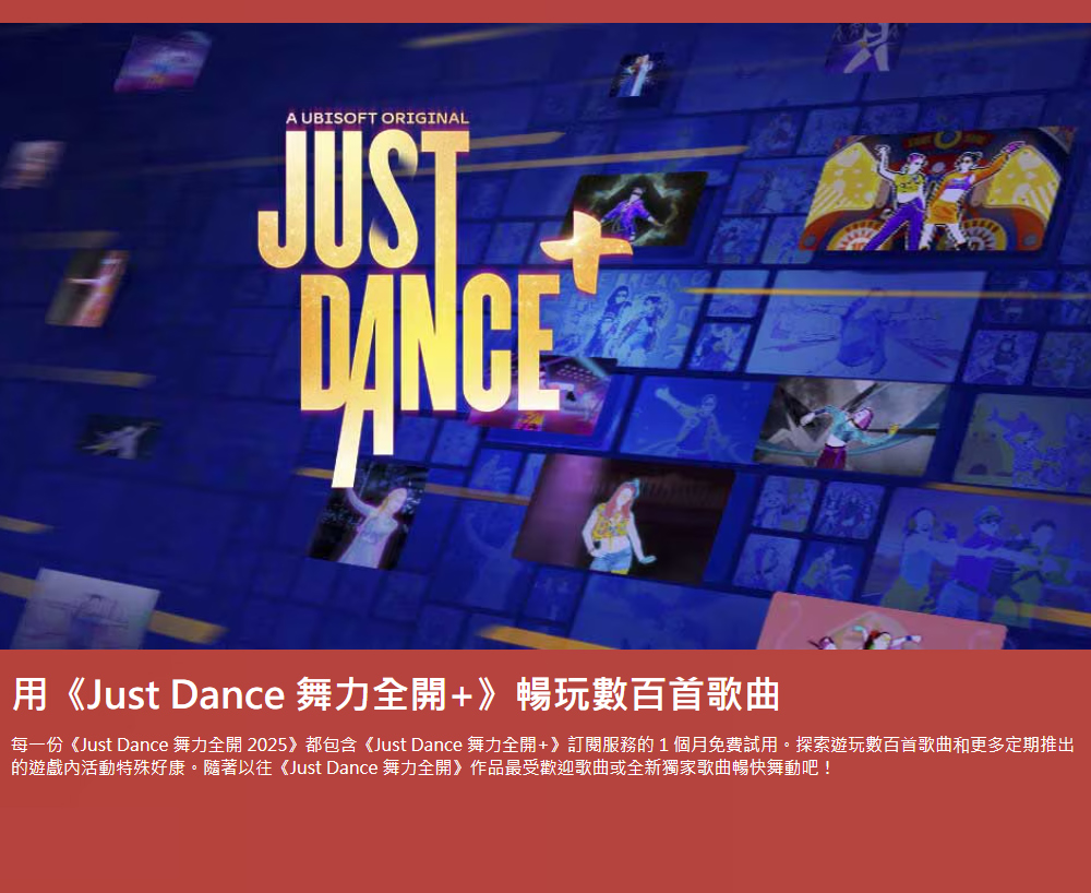《Just Dance 舞力全開》目前是一個完全使用線上功能的娛樂平台,會全年定期更新歌曲與獎勵,玩家將可輕輕鬆鬆地讓派對持續開下去。