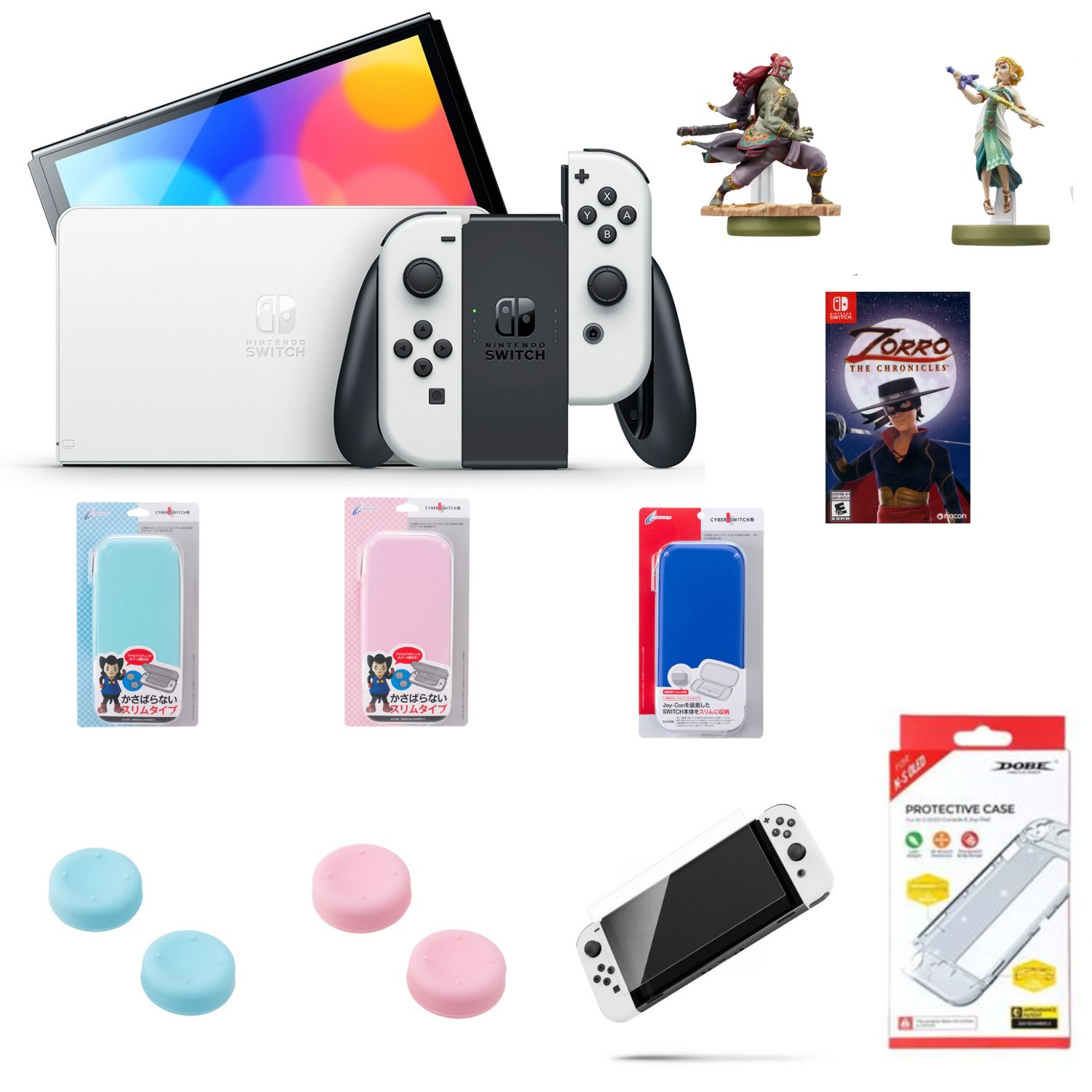 套裝包含 | .Nintendo Switch OLED 款式台灣專用機 .白色 Joy-Con 控制器組 .Joy-Con 腕帶 x 2 .Joy-Con 握把 .Nintendo Switch OLED 款式主機專用鋼化膜螢幕保護貼 | .底座(白) .HDMI 線 .AC 變壓器 .說明書 |