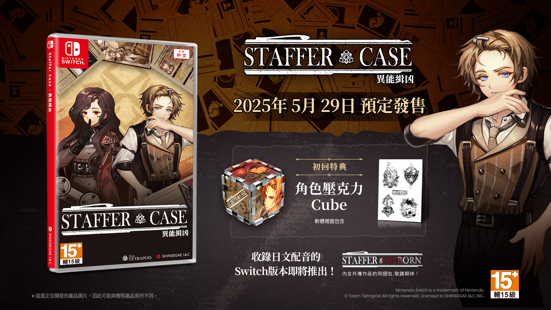 《Staffer Case - 異能緝凶》Nintendo Switch 版將收錄完整版的日文配音,男主角「諾克里克」將由《肌肉魔法使 MASHLE》芬恩.艾姆茲、《給不滅的你》不死的聲優川島零士配音;而女主角「雷芬絲」則由《偶像大師》四條貴音、《OVERLORD》雅兒貝德的聲優原由實配音。