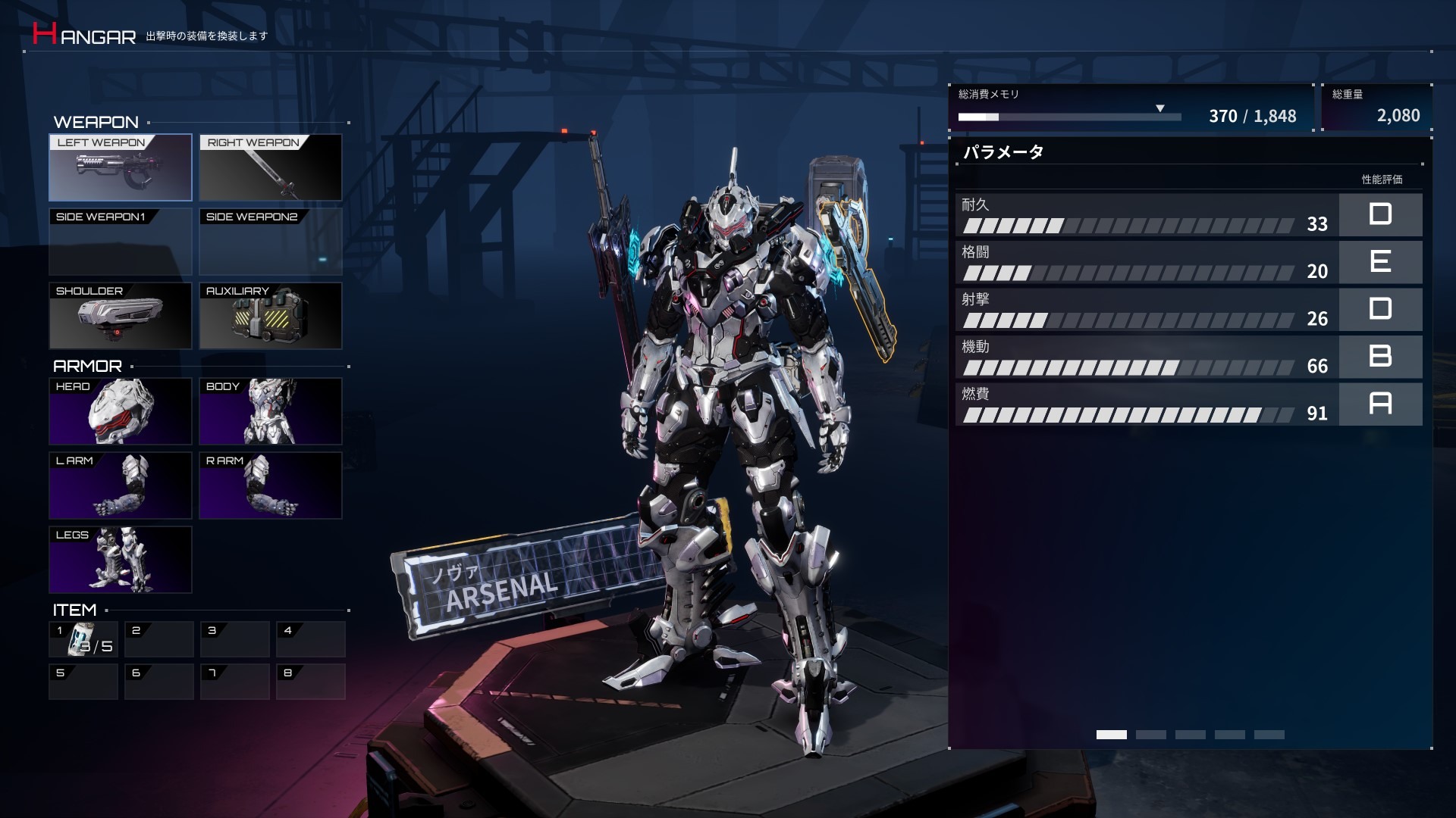 外部裝甲「兵裝機甲」可根據不同的裝甲組合,改變機動性、防禦力及擅長的武器類型,進而影響整體機體性能。