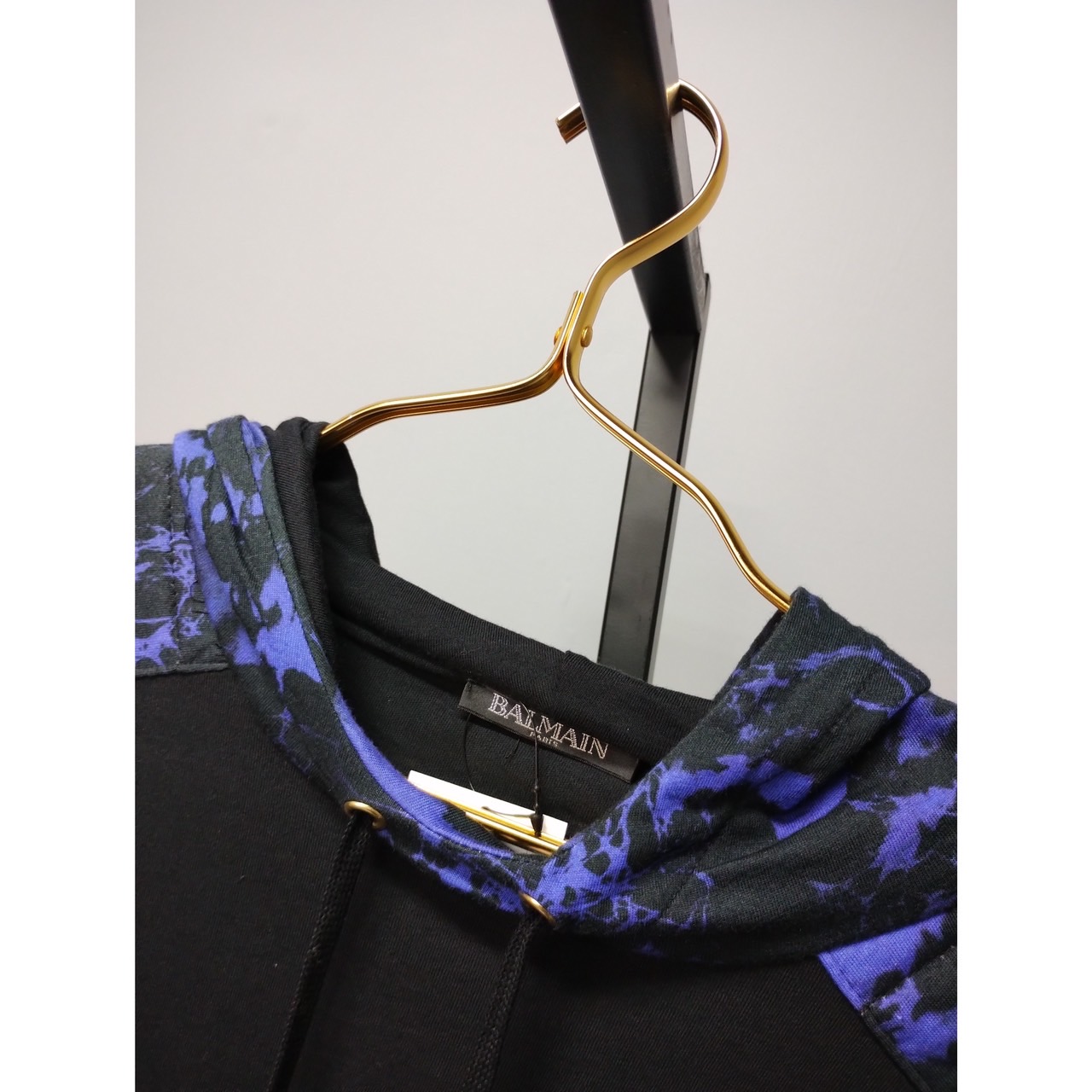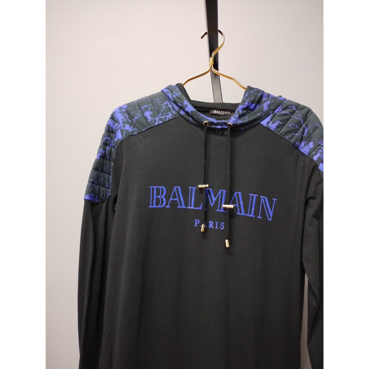 BALMAIN 黑底藍字體大學帽T