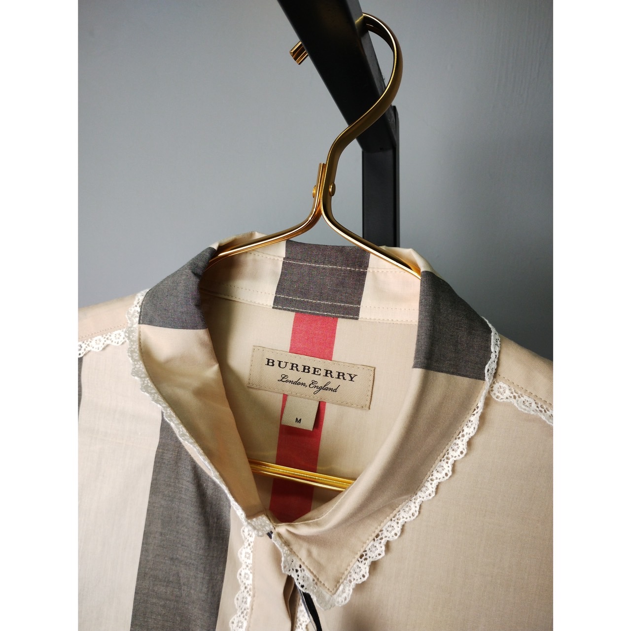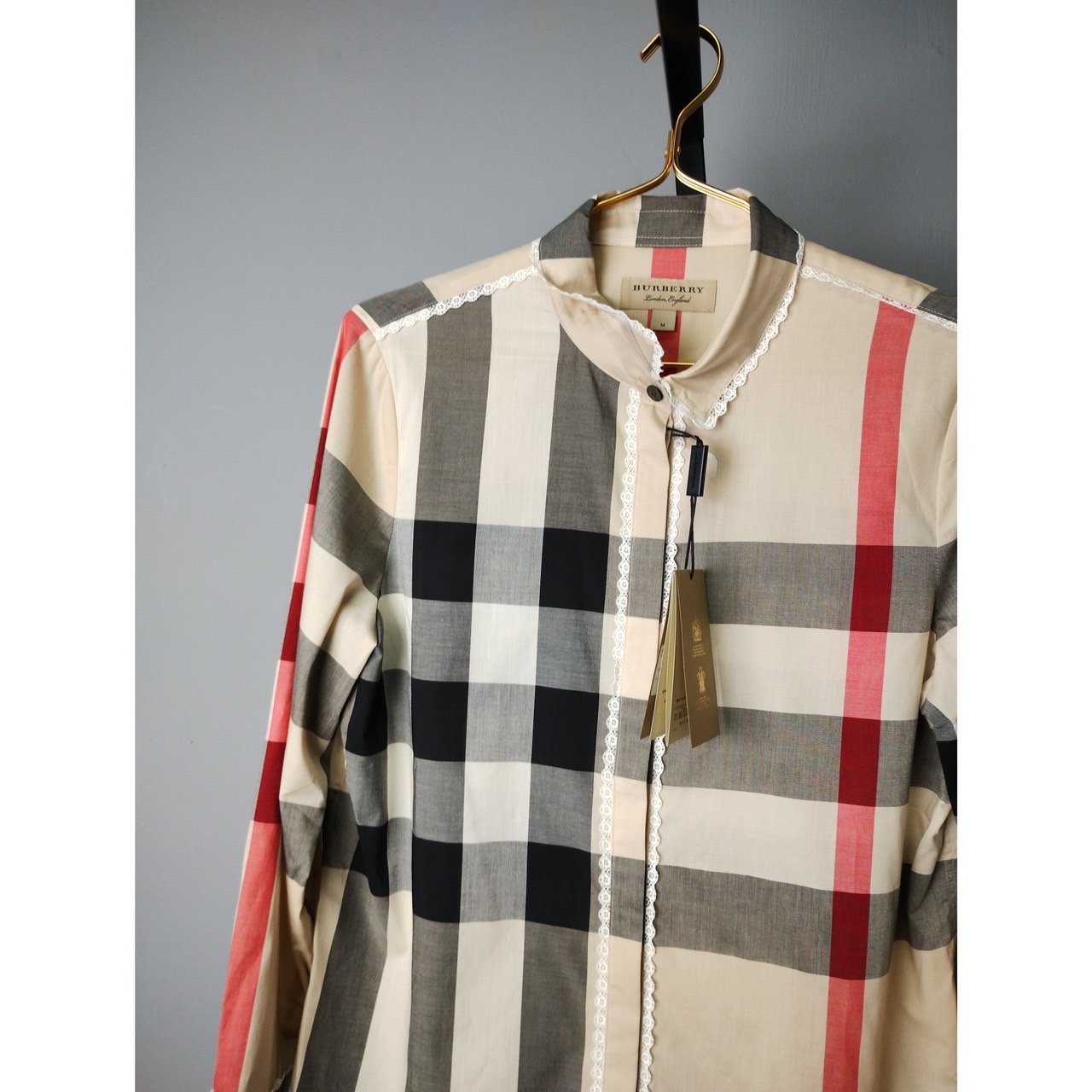 BUEBERRY 大格紋蕾絲襯衫