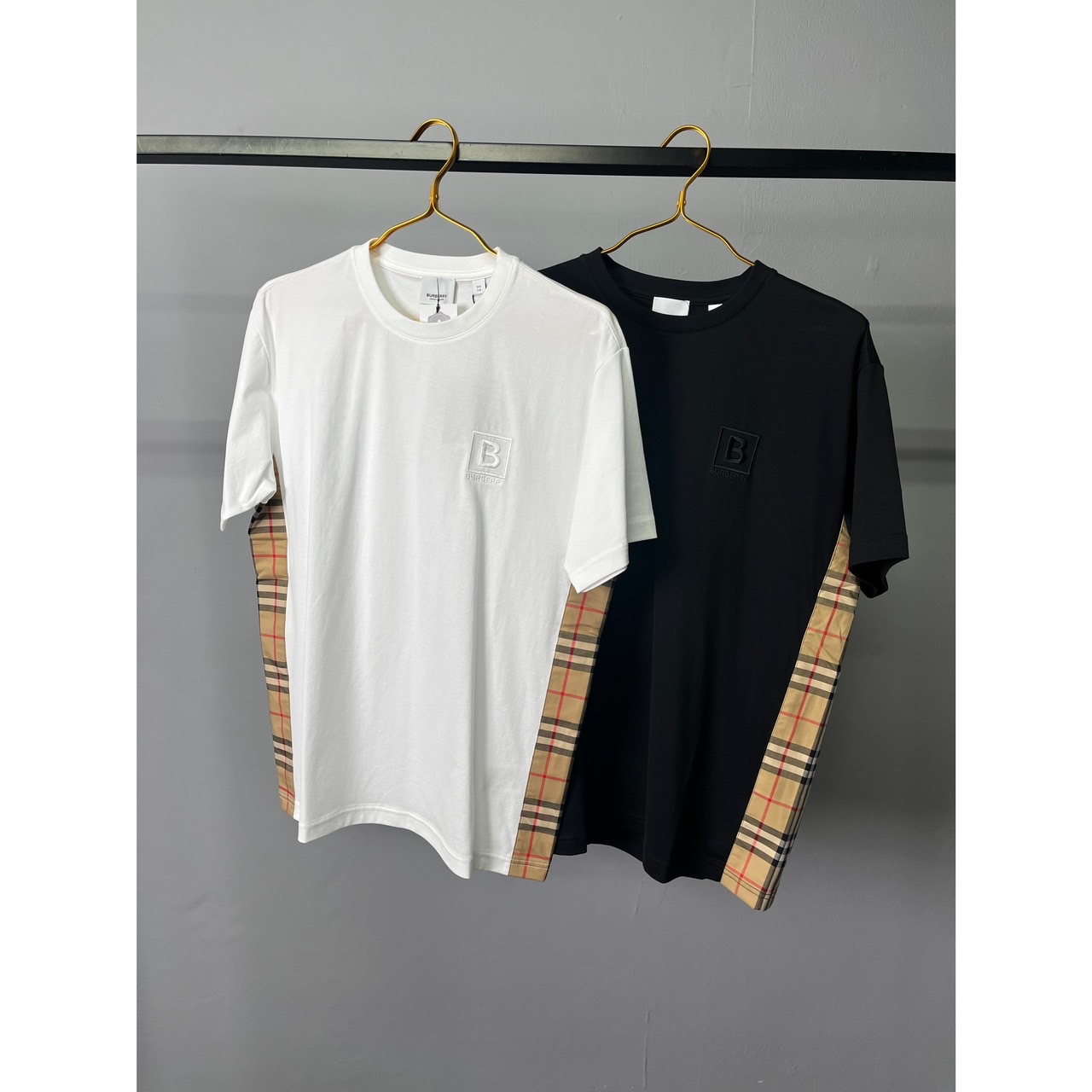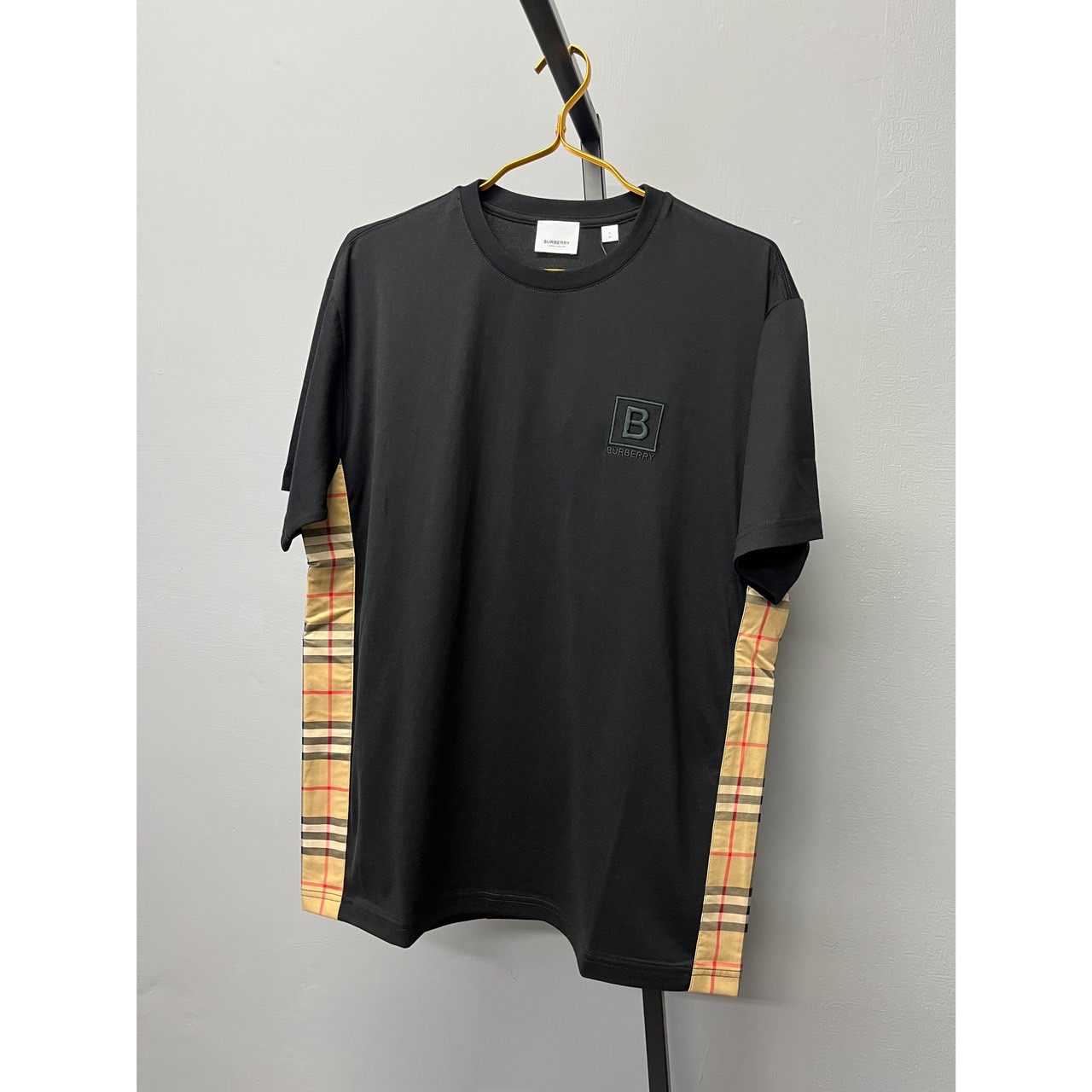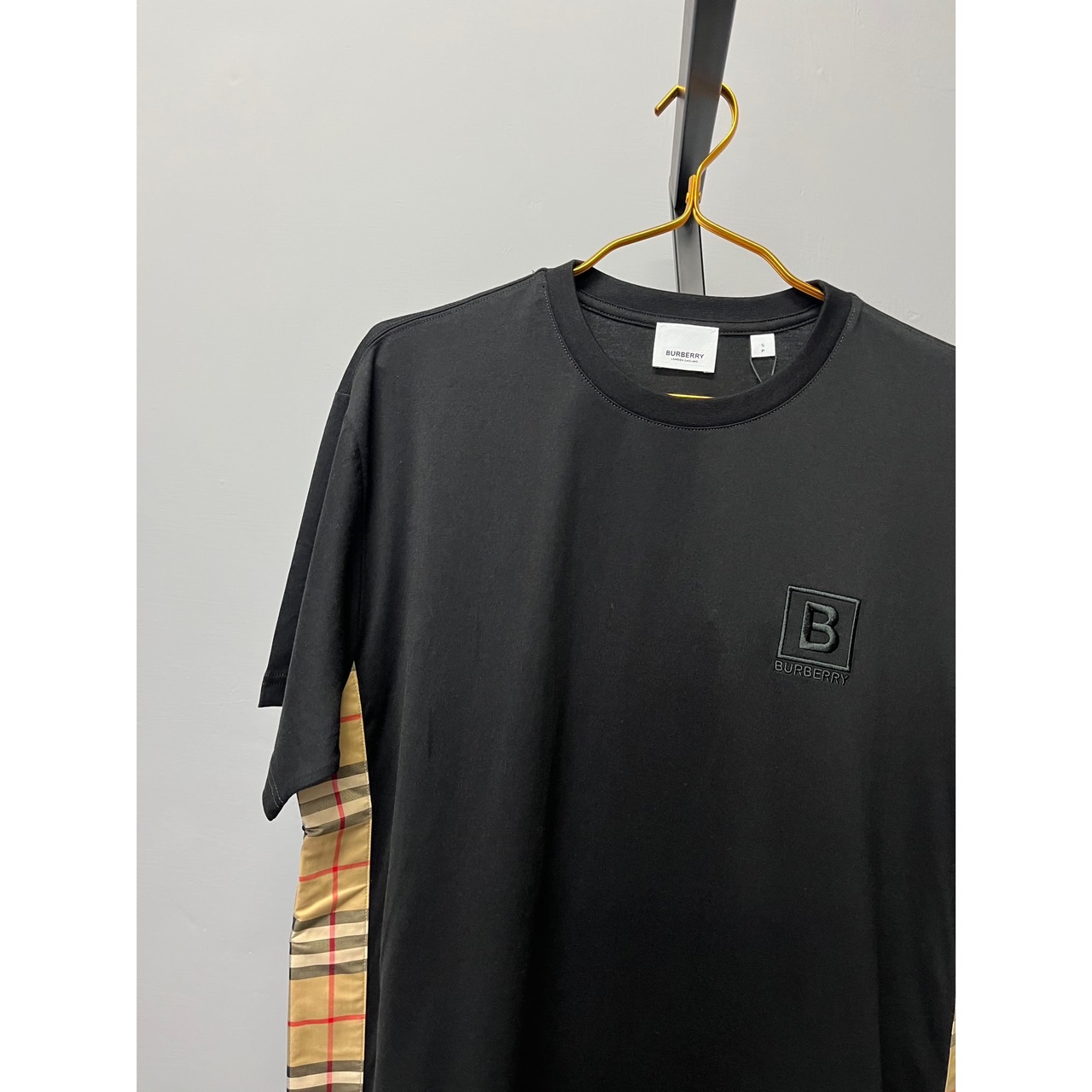 BURBERRY 左胸刺繡LOGO側身格紋短袖