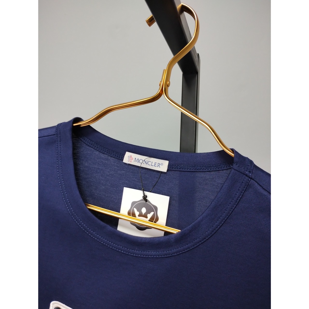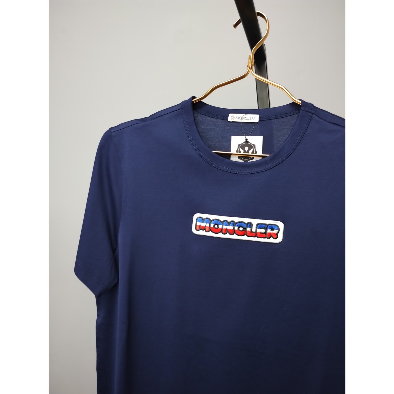MONCLER 深藍胸前字體小LOGO短T