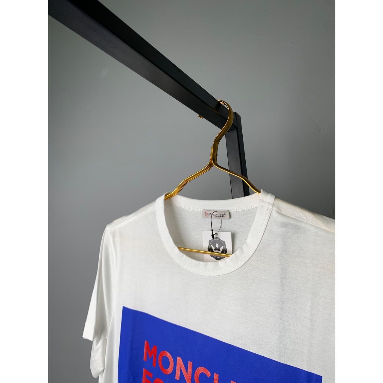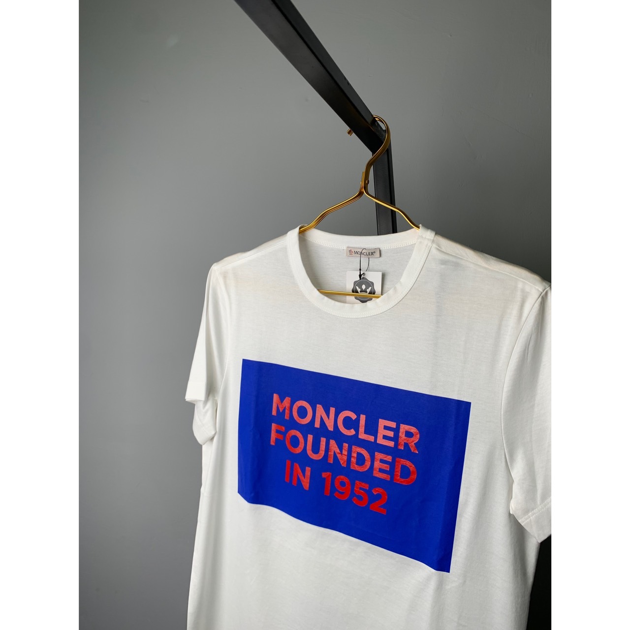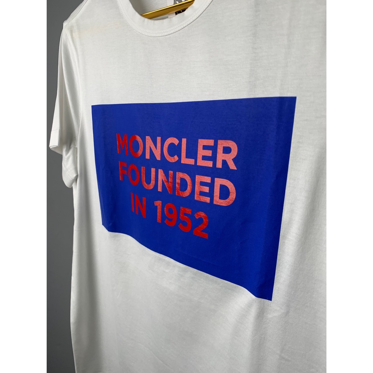 MONCLER 白底藍框內文字短T
