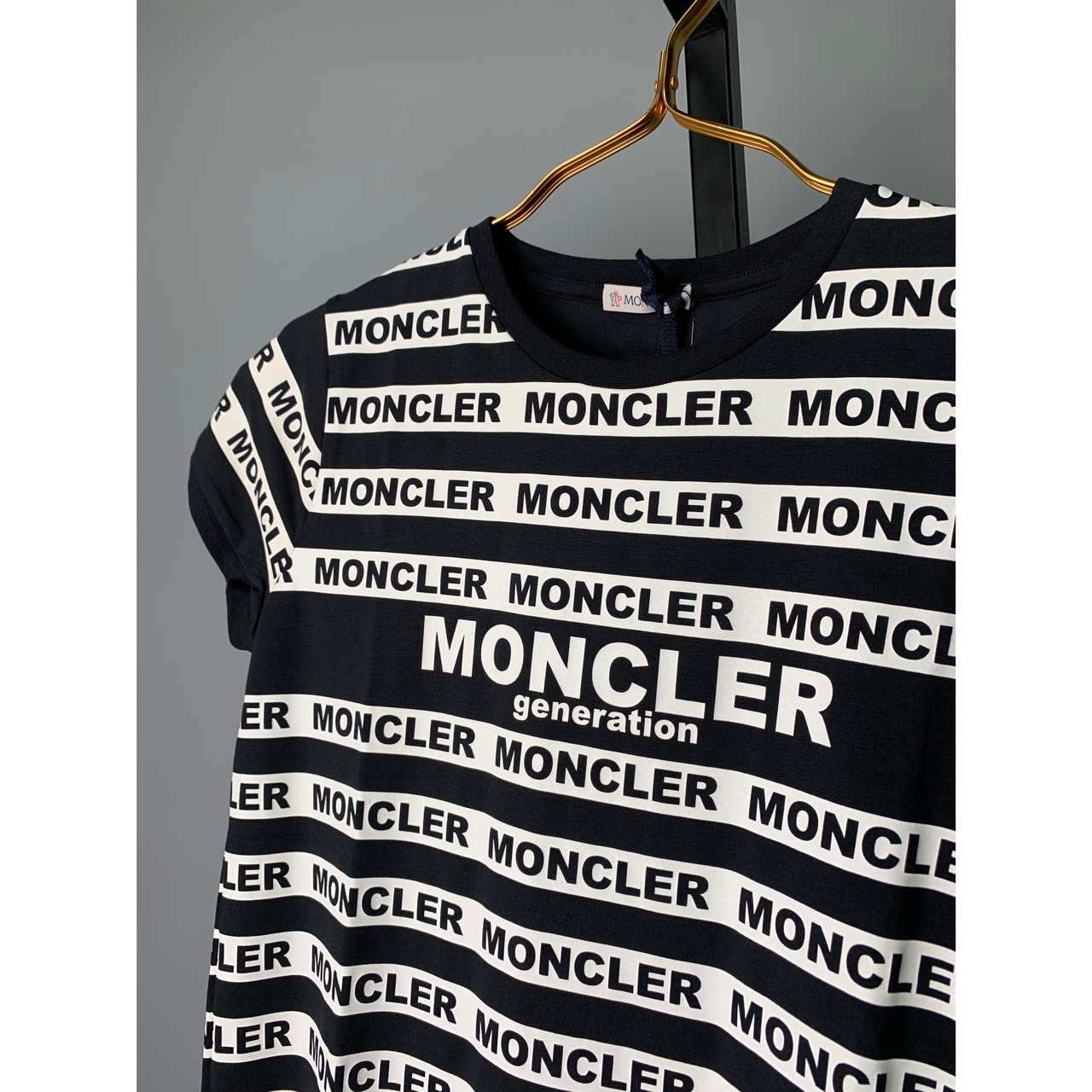 MONCLER 黑白線條滿版文字短T