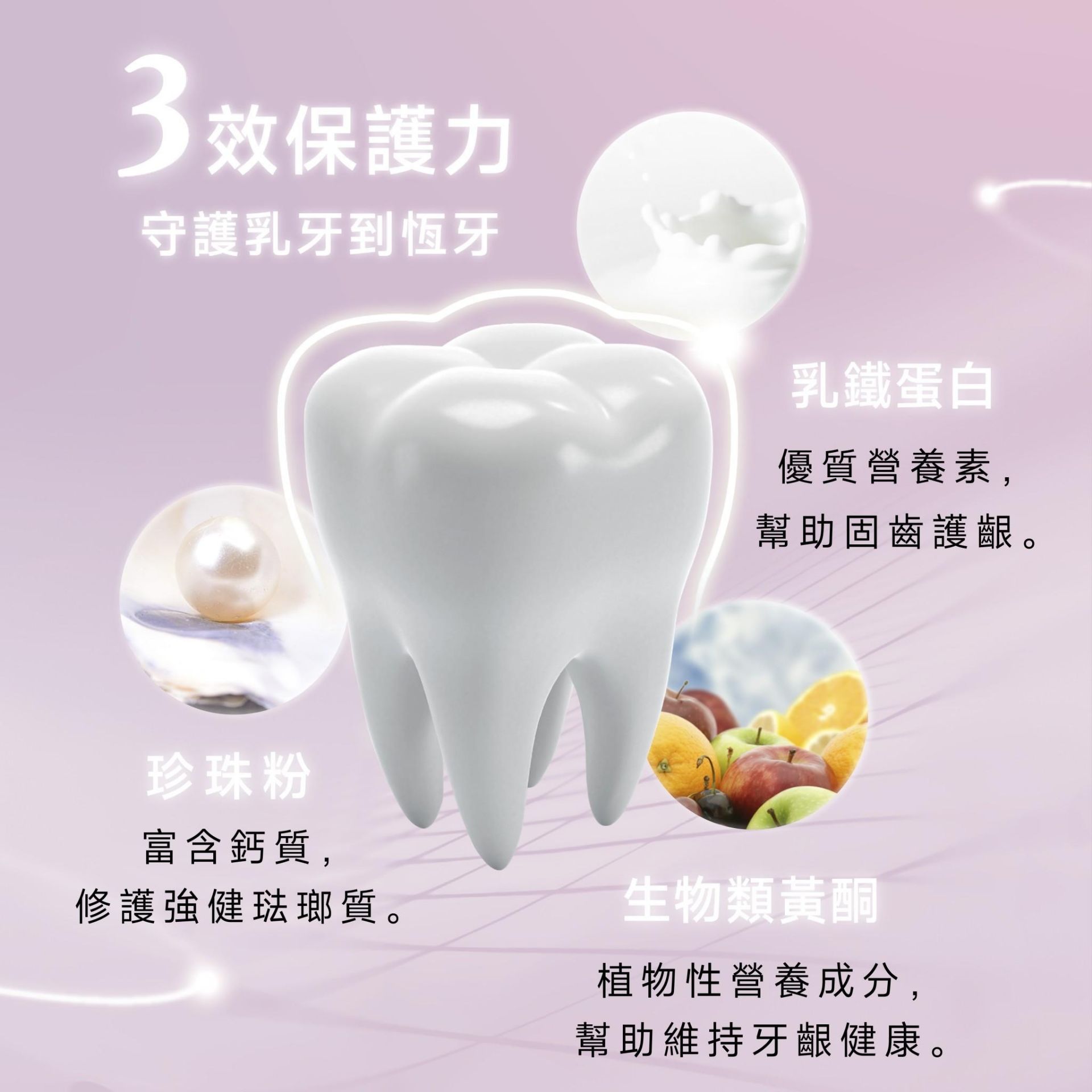從0歲開始,照顧寶貝萌牙! ✅適合0~12歲孩子使用,長第一顆牙齒就能使用 ✅食用級成分可不漱口,不含氟與發泡劑,爸媽放心的嚴格品質 自天然食材提取!食用級原料,當孩子不小心吃牙膏時,您可以更放心,可吞嚥,刷完可不漱口 ✅乾刷最好!天然酵素分解牙垢,口腔好益菌 生物仿生酵素-澱粉酵素、葡萄糖氧化酵素、乳酸過氧化酵素、溶菌酵素,模擬唾液清潔機制,酵素會清除牙垢,有效清潔打造「有益菌」環境,呵護口腔 ✅溫和四口味,無泡沫刺激,寶貝接受度高! 超溫和口感,沒有泡沫刺激,讓孩子喜歡上刷牙 配合「三餐飯後刷牙習慣」 讓孩子能有健康的牙齒 「擔心寶貝的食安!更要認真選擇牙膏!」口腔唾液本身就有清潔能力,分解糖分及澱粉污垢,使用與唾液中相同的四種酵素,讓刷牙潔淨牙齒更自然健康! 3效加強!乳鐵蛋白、珍珠粉及生物類黃酮幫助修護強健琺瑯質,固齒護齦,守護乳牙到恆牙 兒童酵素牙膏 主要成份:澱粉酵素、葡萄糖氧化酵素、乳酸過氧化酵素、溶菌酵素、乳鐵蛋白、珍珠粉、木糖醇、生物類黃酮、草莓優格粉 商品重量:40g 產地:台灣 保存期限:三年
