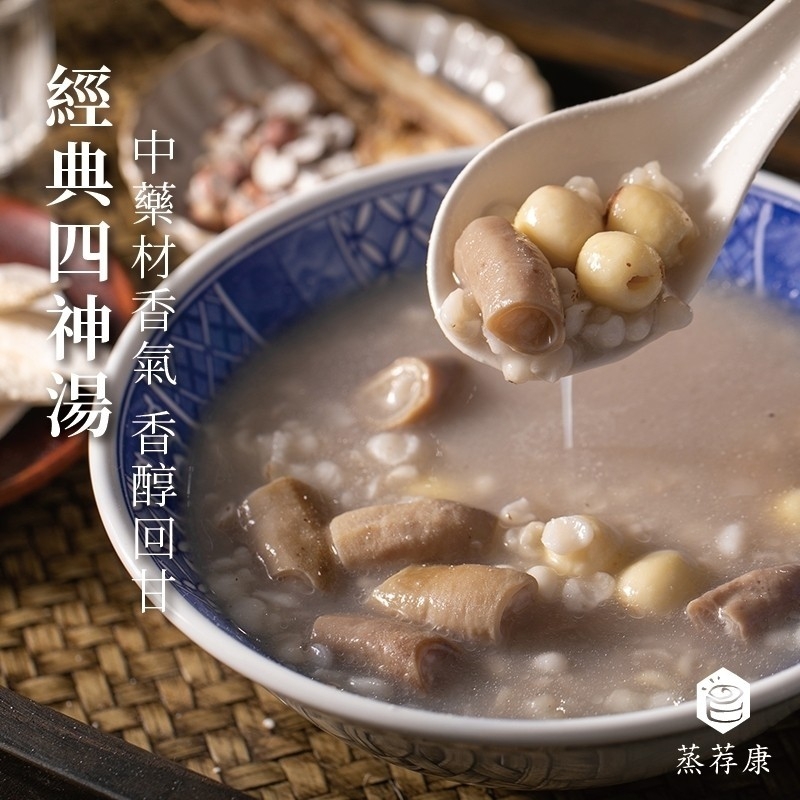 (一包兩入)~~~❤️ 知名老店-蒸荐康【湯品】 團購回家煮 有沒有某個時候特別想念哪裡的美食...👩‍🍳 蒸荐康聽到你的心聲了🥄現在就能完成你的願望!!! 就是這麼方便 小小一包,輕鬆加熱,馬上享受🥰 快速吃到美食-蒸荐康🥢 蒸荐康-四神湯(510g/2包,255g/包) 產地:台灣 成分:豬小腸、蓮子、薏仁、淮山、芡實、茯苓、高湯(水、雞骨、薑、洋蔥)、鹽、美力香味料(L-麩酸鈉,琥珀酸二鈉,5’-次黃嘌呤核苷磷酸二鈉,5’-鳥嘌呤核苷磷酸二鈉,DL-胺基丙酸)、雞粉【鹽,麥芽糊精,L-麩酸鈉,糖,玉米澱粉,雞肉粉(含迷迭香萃取物),香料,酵母萃取物(含鹽),雞油(含迷迭香萃取物),棕櫚油,調味劑(5’-次黃嘌呤核苷磷酸二鈉,5’-鳥嘌呤核苷磷酸二鈉)】。 調理包:調理米酒。 食用方法:本產品為冷凍調理包,需完全加熱調理才可食用。 將冷凍湯包從冰箱拿出,剪開包裝放入鍋中,再加入300cc水(依照個人口味調整),放入容器中加熱煮至滾即可。本產品含有酒精,禁止酒駕。
