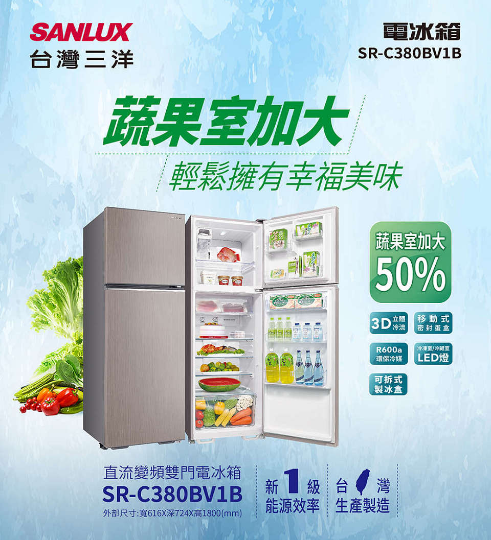 SANLUX台灣三洋 一級能效380公升雙門變頻冰箱SR-C380BV1B