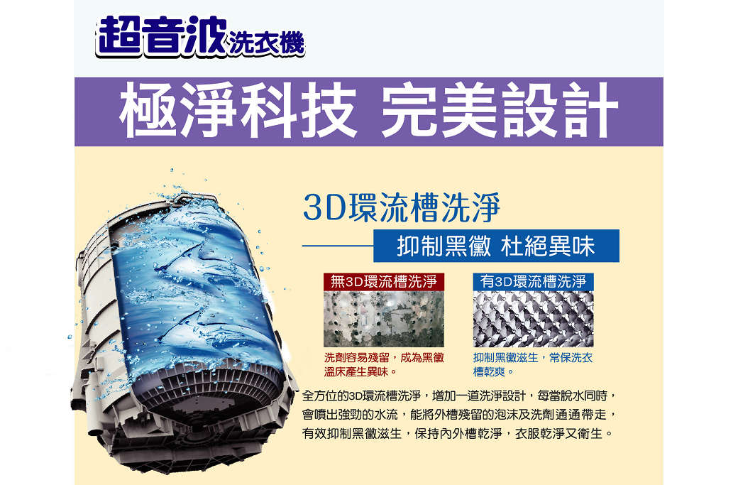 .超音波洗淨新洗衣水流概念