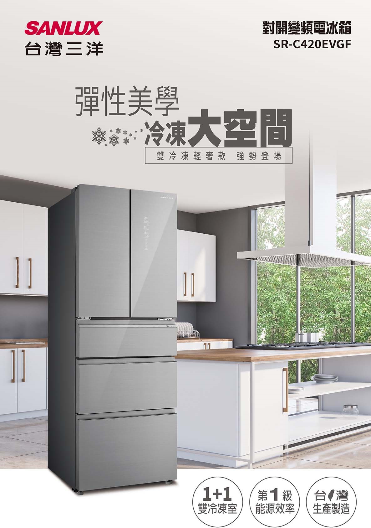 【SANLUX 台灣三洋】 420公升 變頻五門對開冰箱 SR-C420EVGF 上冷藏下冷凍