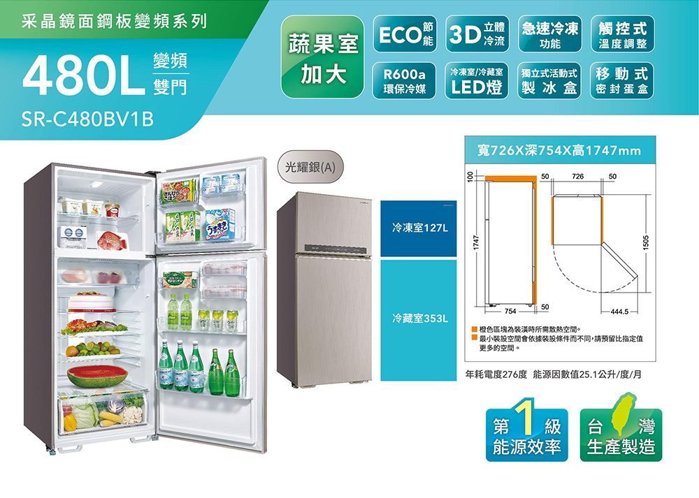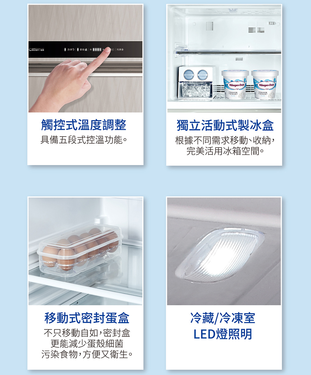 ● R600a環保新冷媒 ● 冷凍室庫內燈 ● 冷藏室庫內燈