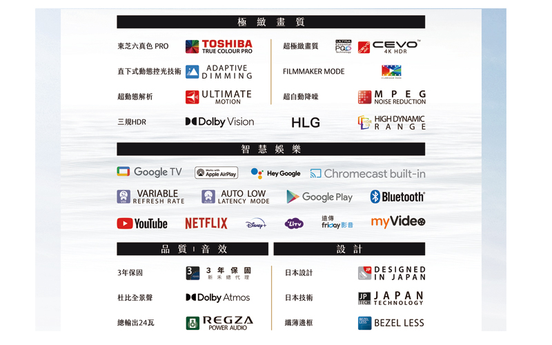 支援Apple AirPlay 2 ▇ 全新Google TV |智慧語音系統 ▇ 遊戲支援 VRR可變更新率、ALLM自動低延遲 ▇ 4K 超亮面板
