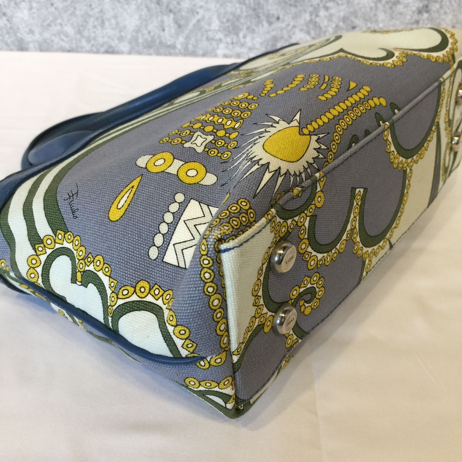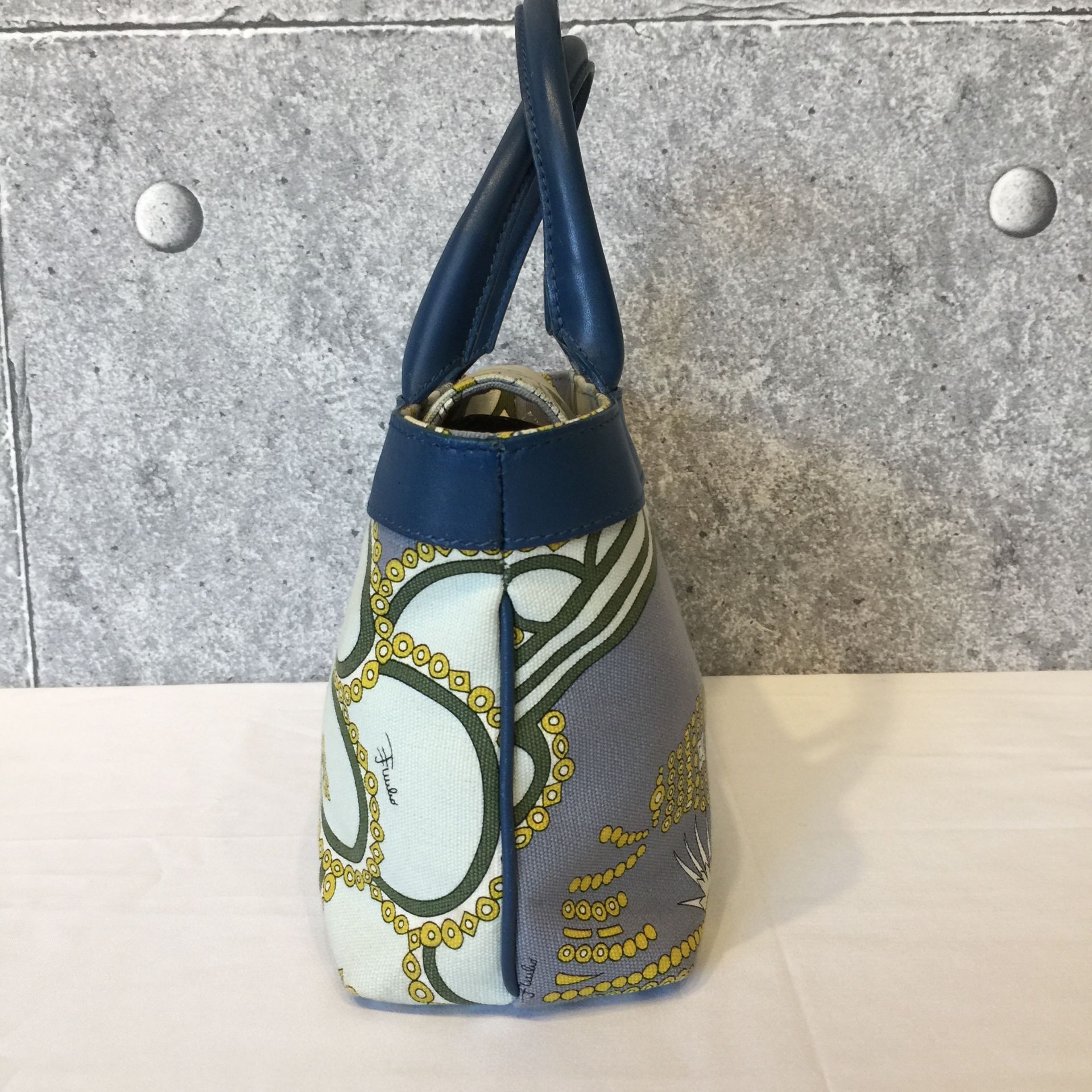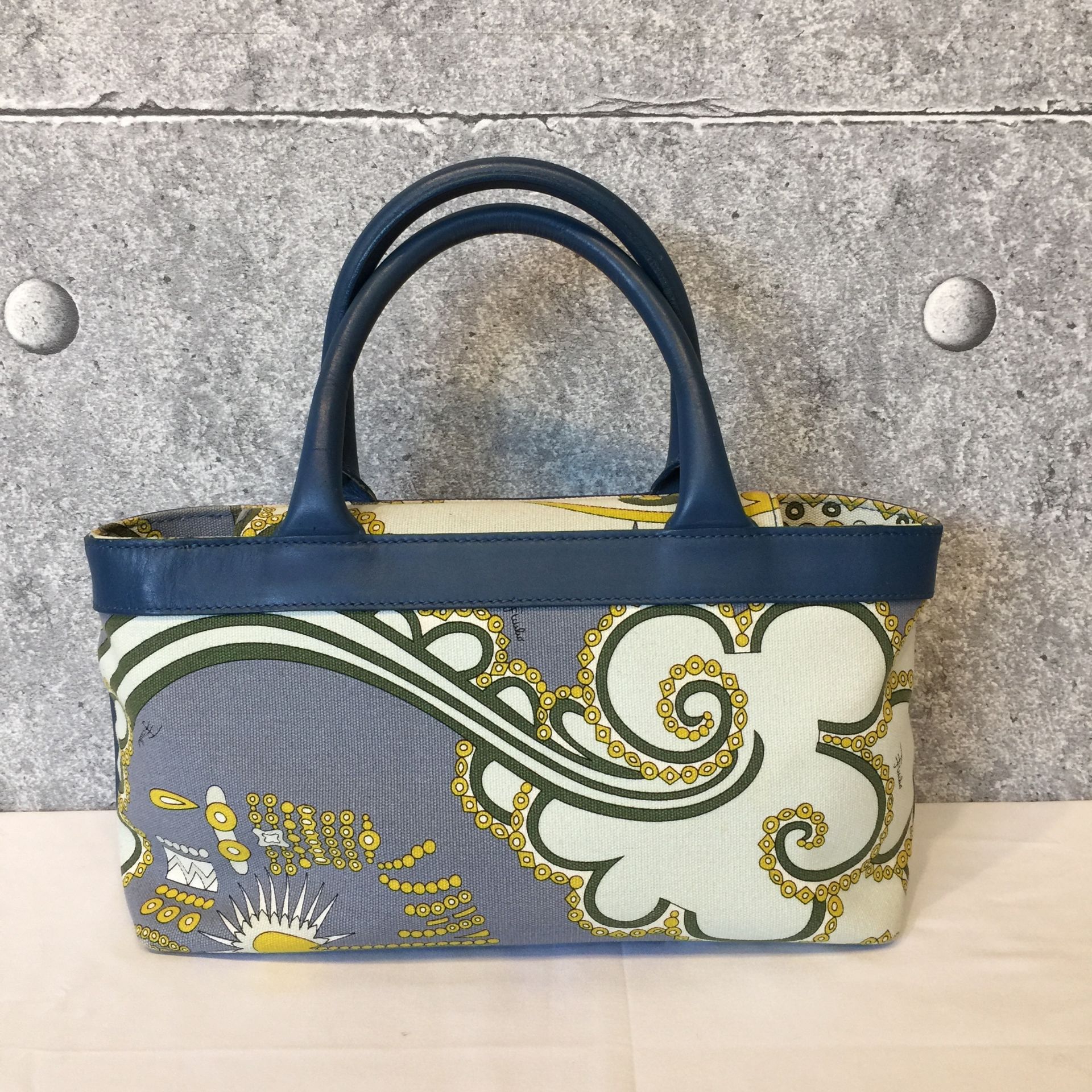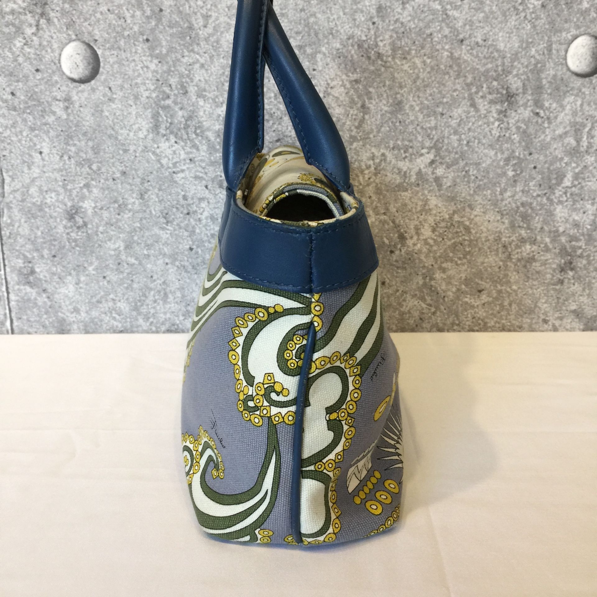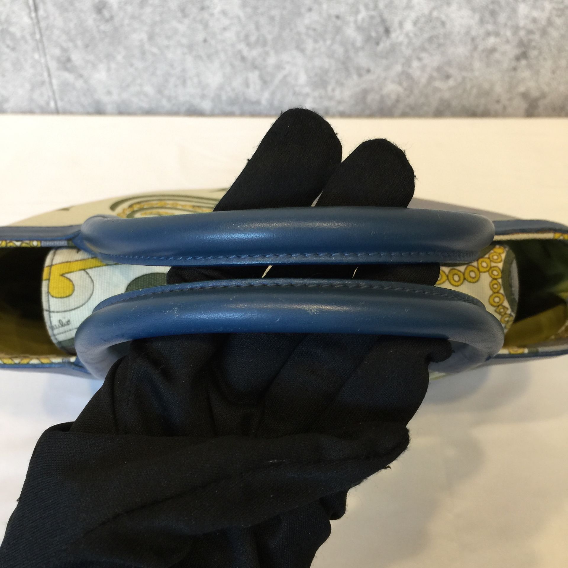 【哈極品】二美手品《EMILIO PUCCI 彩繪 布面拼藍色皮革 手提包》